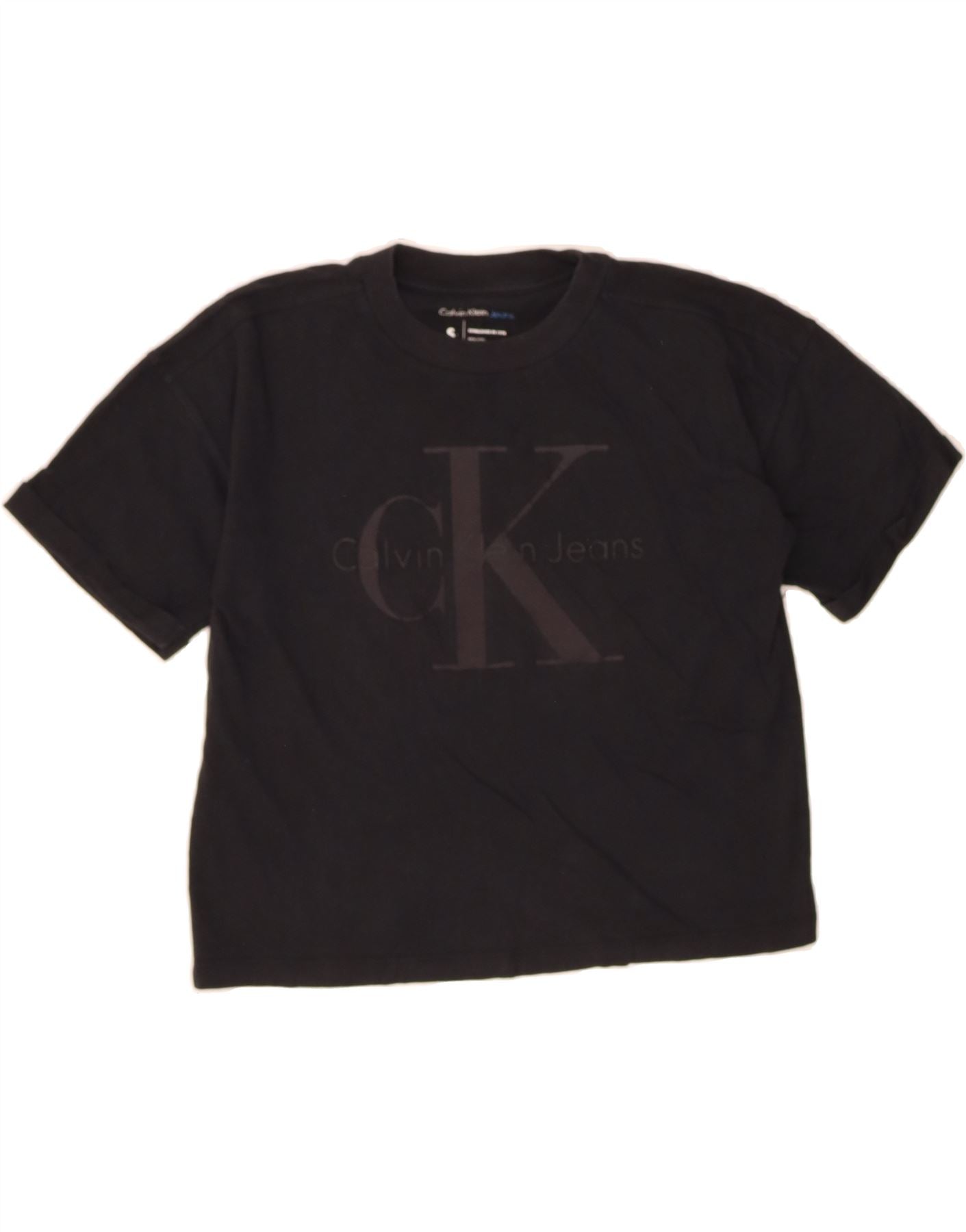 CALVIN KLEIN JEANS Womens Crop Graphic T-Shirt Top UK 10 Small Black