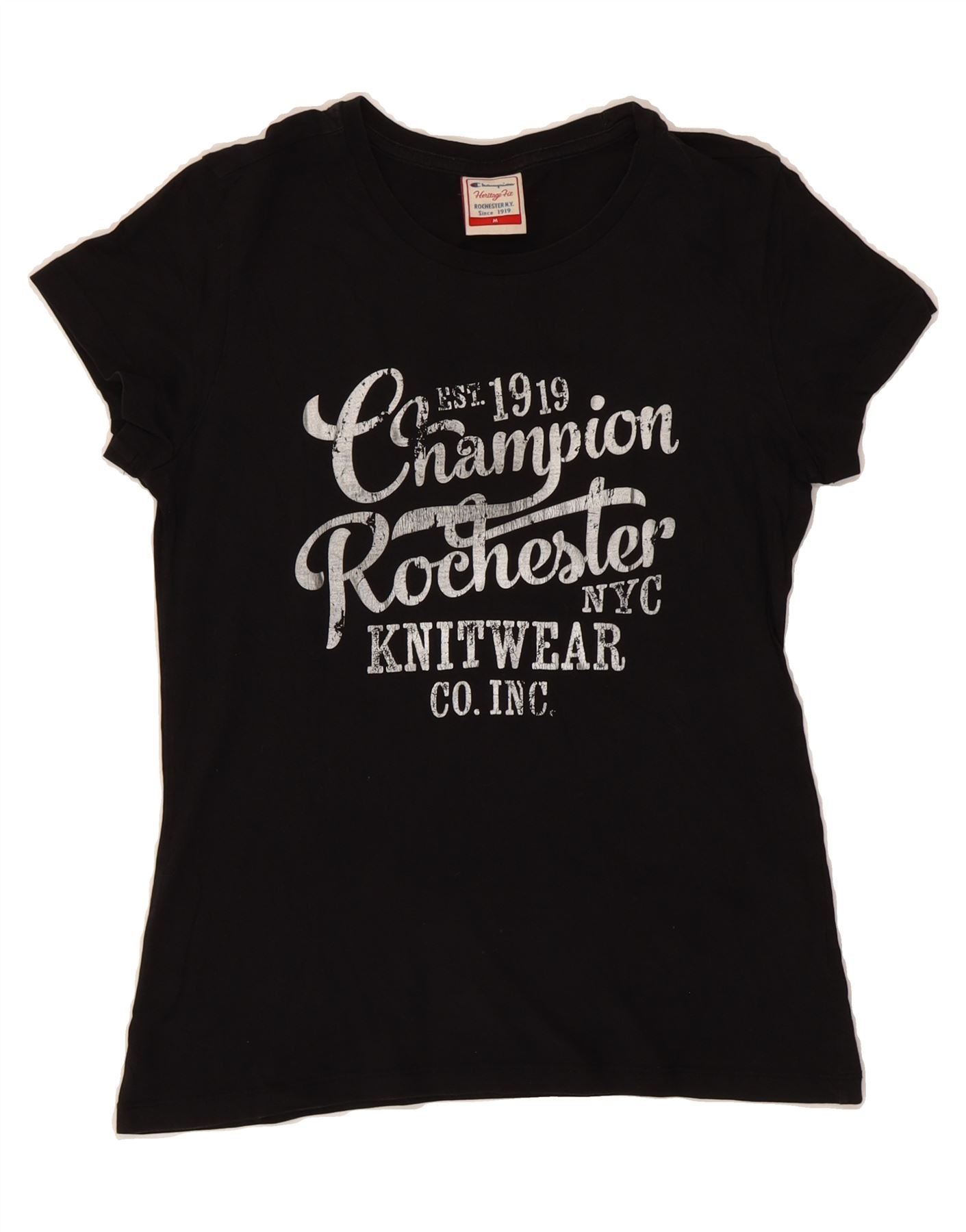 CHAMPION Womens Heritage Fit Graphic T-Shirt Top UK 12 Medium Black Cotton