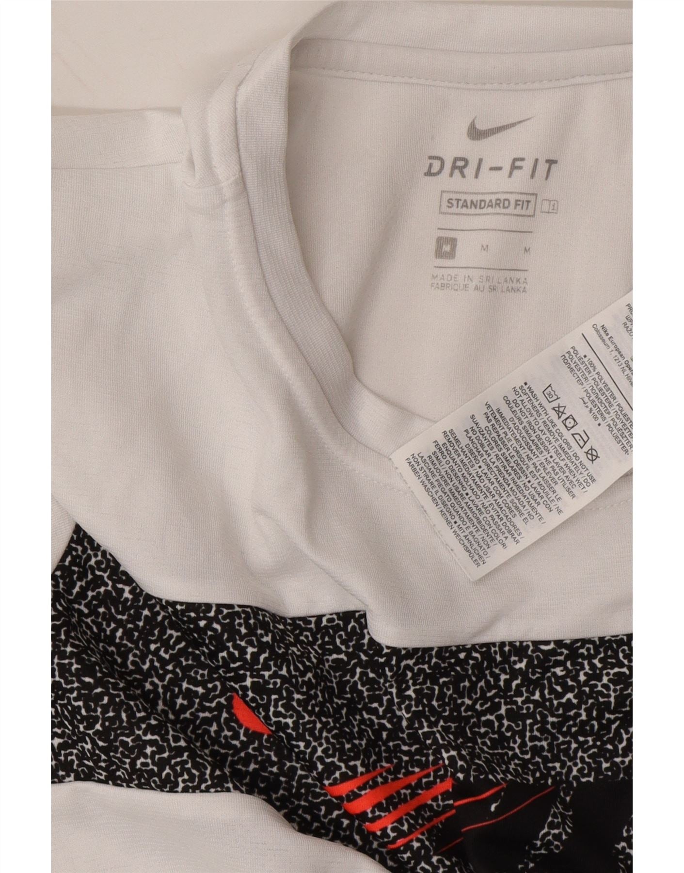 NIKE Mens Dri Fit Standard Fit Graphic T-Shirt Top Medium White Polyester