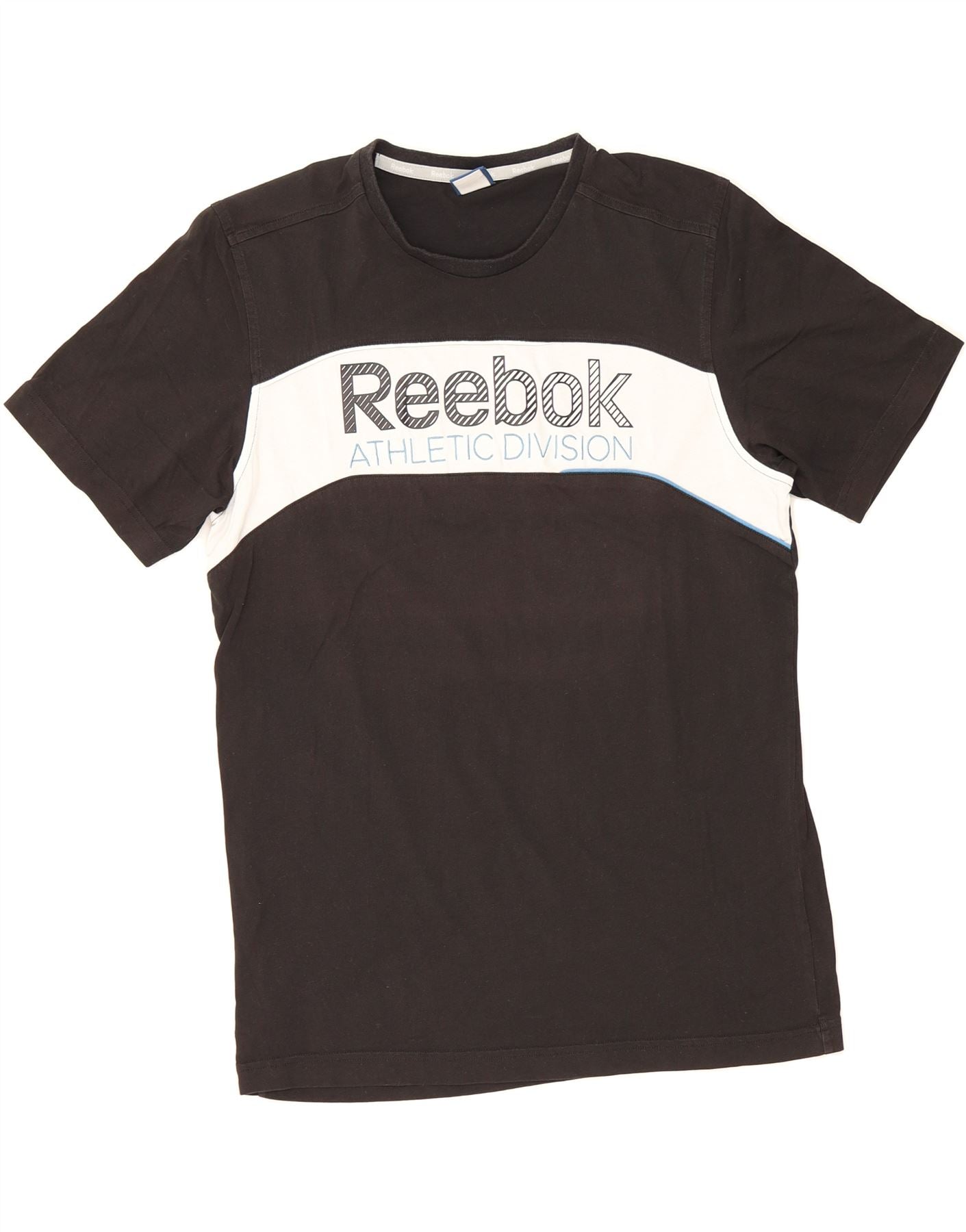 REEBOK Mens Graphic T-Shirt Top Medium Black Colourblock Cotton