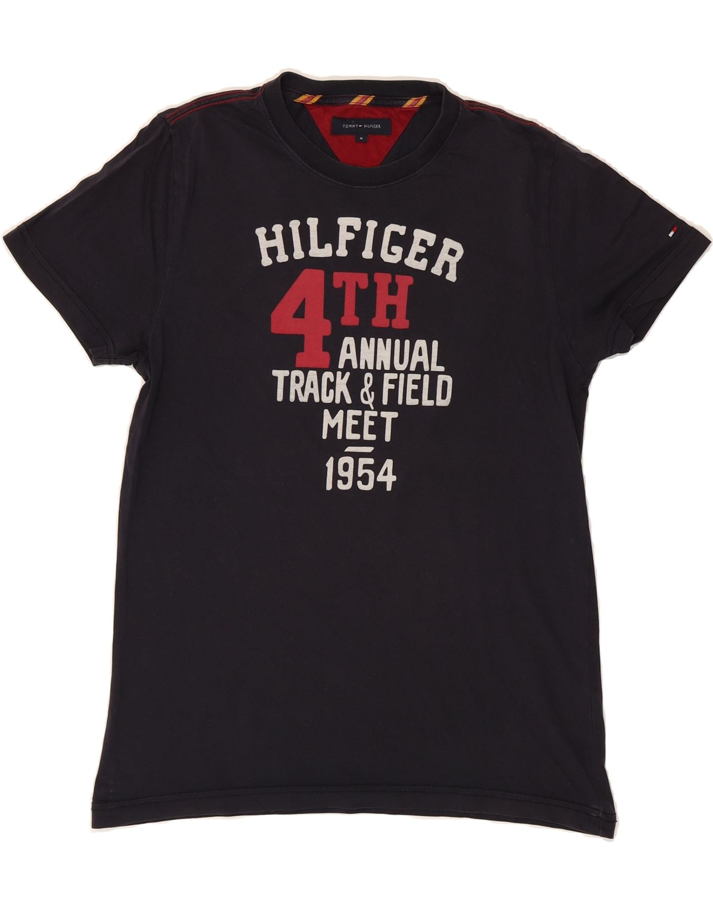 TOMMY HILFIGER Mens Graphic T-Shirt Top Medium Black Cotton