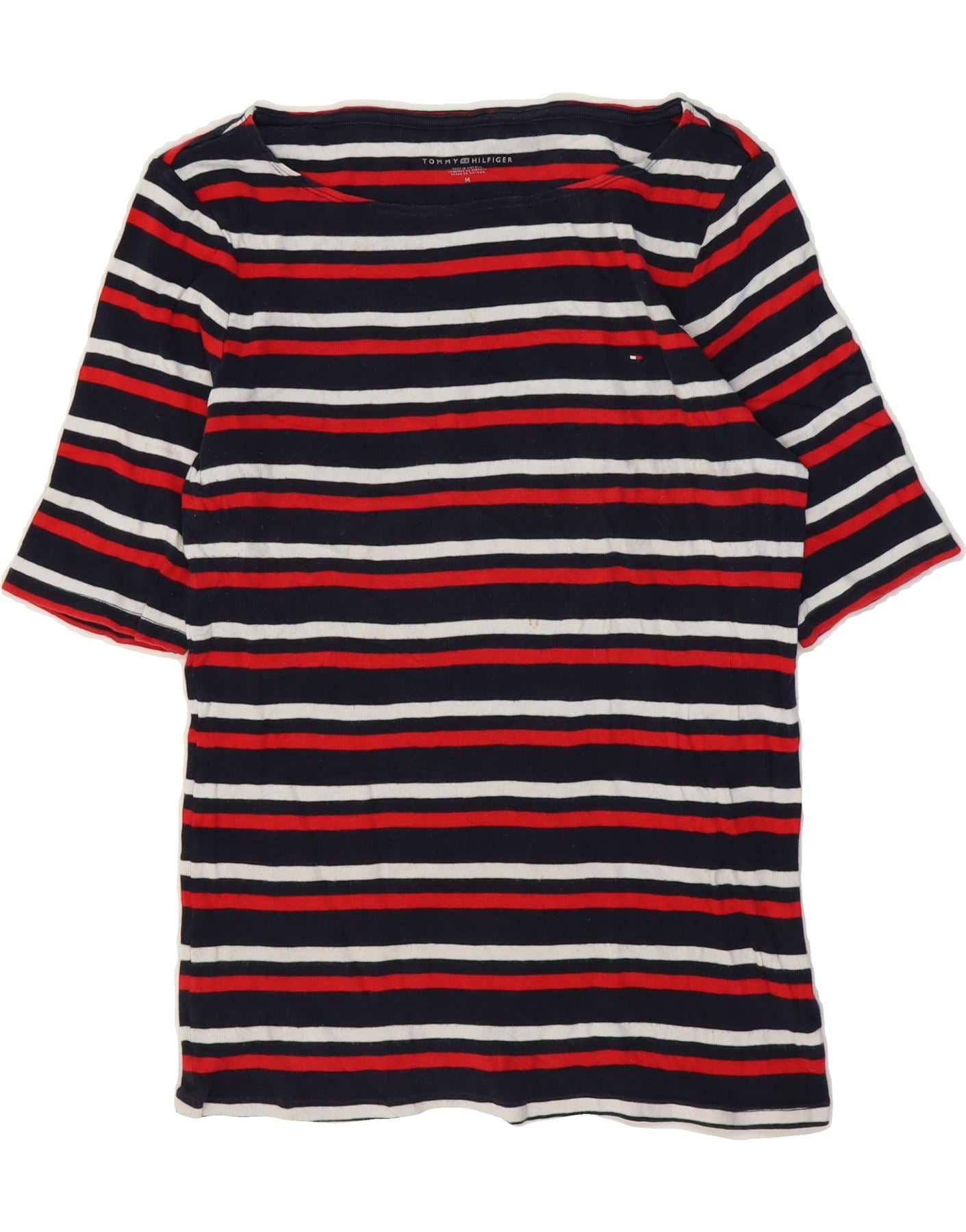 TOMMY HILFIGER Womens T-Shirt Top UK 12 Medium Black Striped Cotton