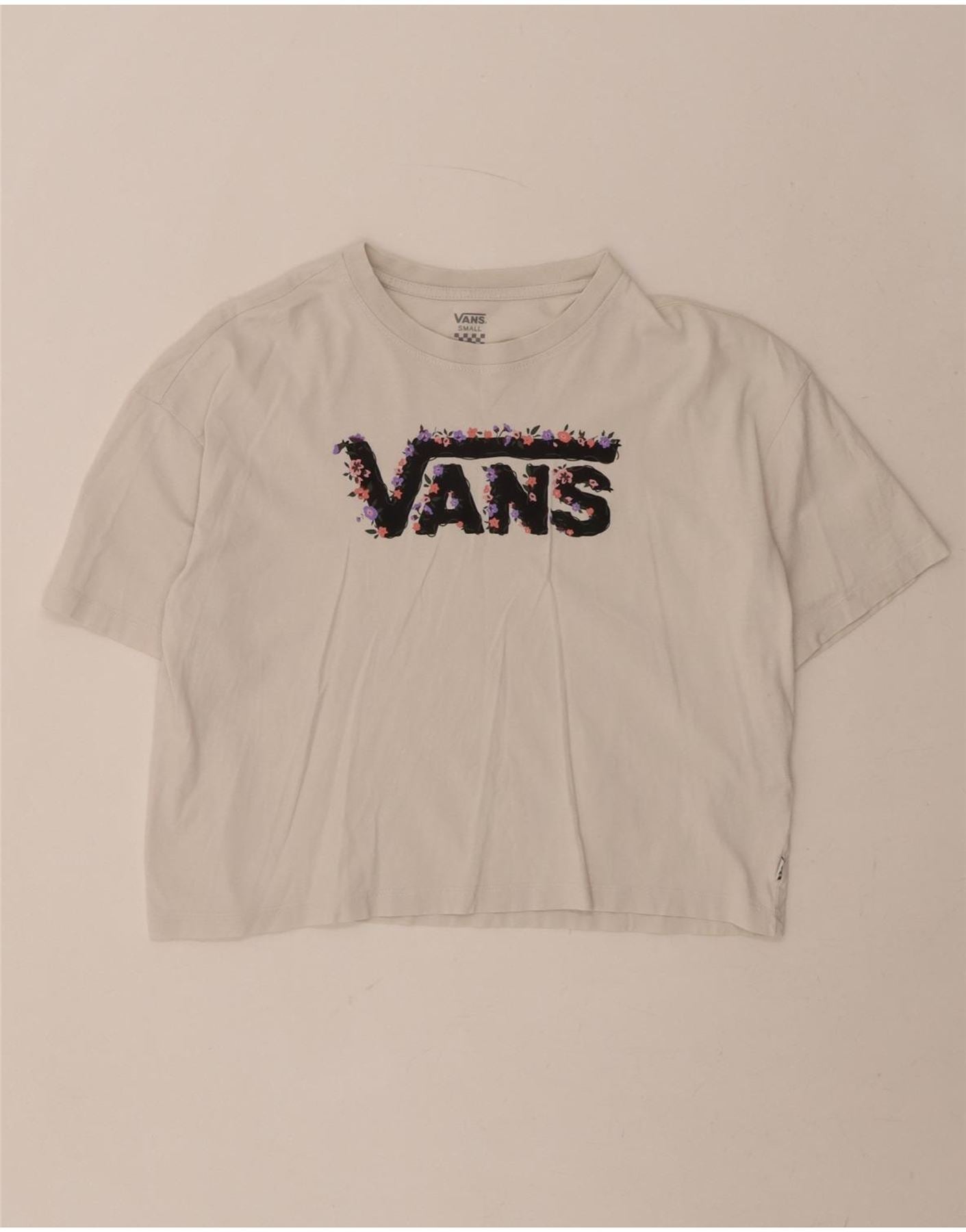 VANS Womens Oversized Crop Graphic T-Shirt Top UK 10 Small Off White