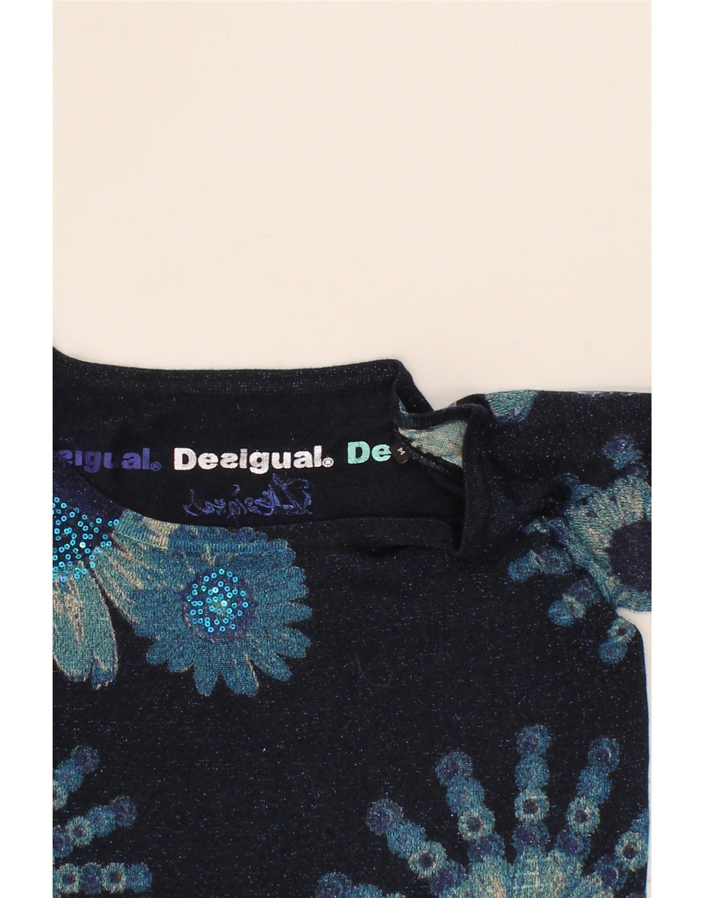 DESIGUAL Womens Boat Neck Jumper Sweater UK 12 Medium Navy Blue Floral
