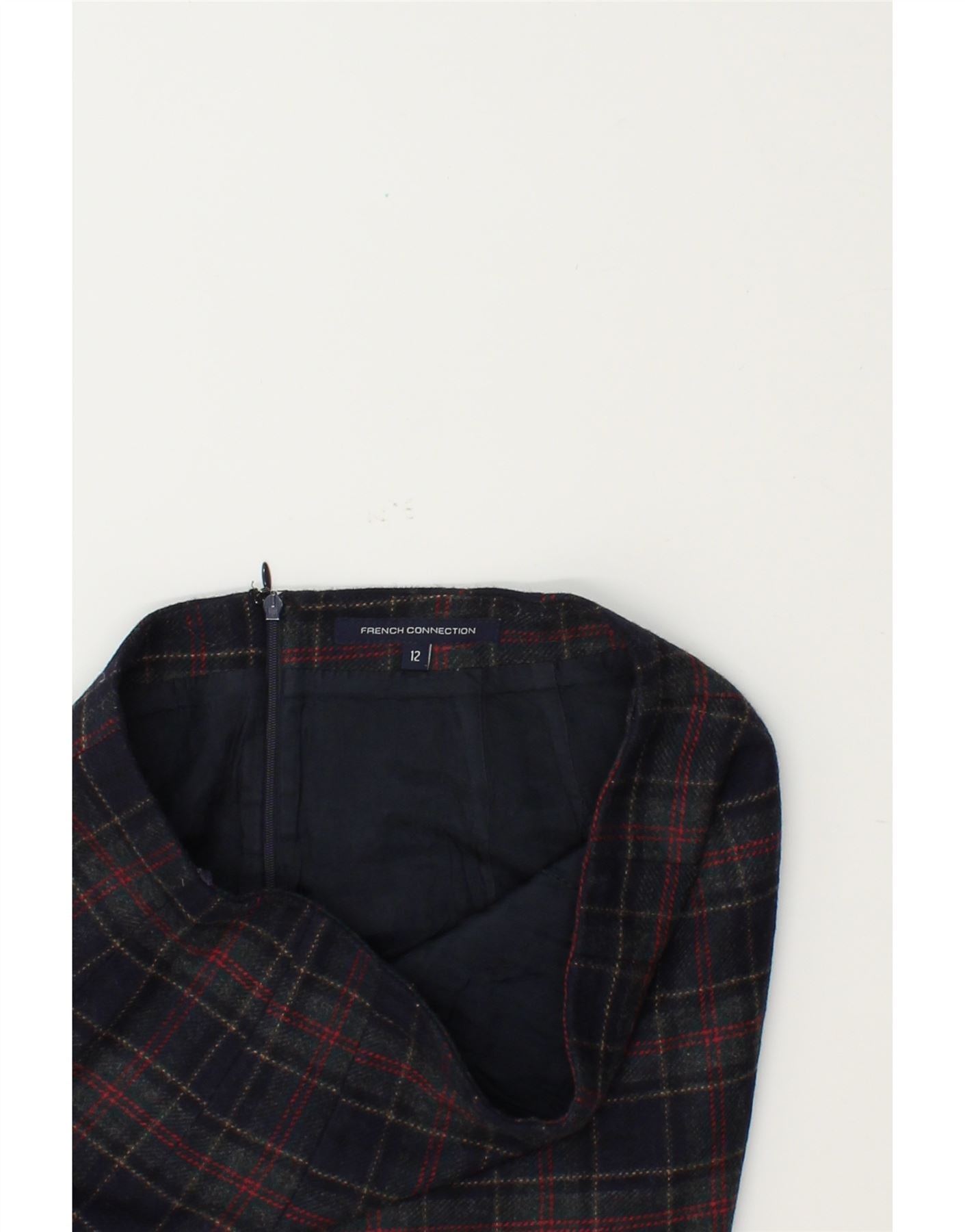 FRENCH CONNECTION Womens Mini Skirt UK 12 Medium W28 Navy Blue Check Wool