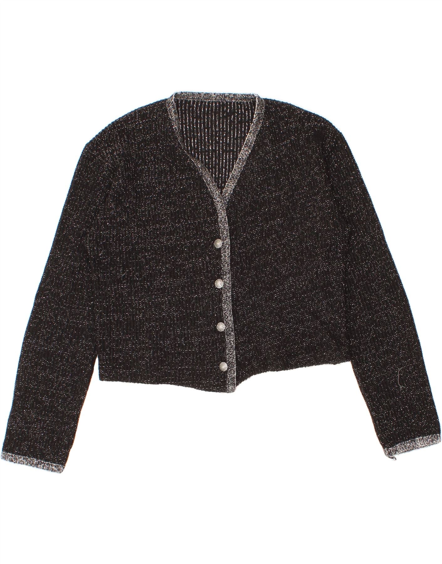 VINTAGE Womens Crop Cardigan Sweater UK 12 Medium Black Flecked