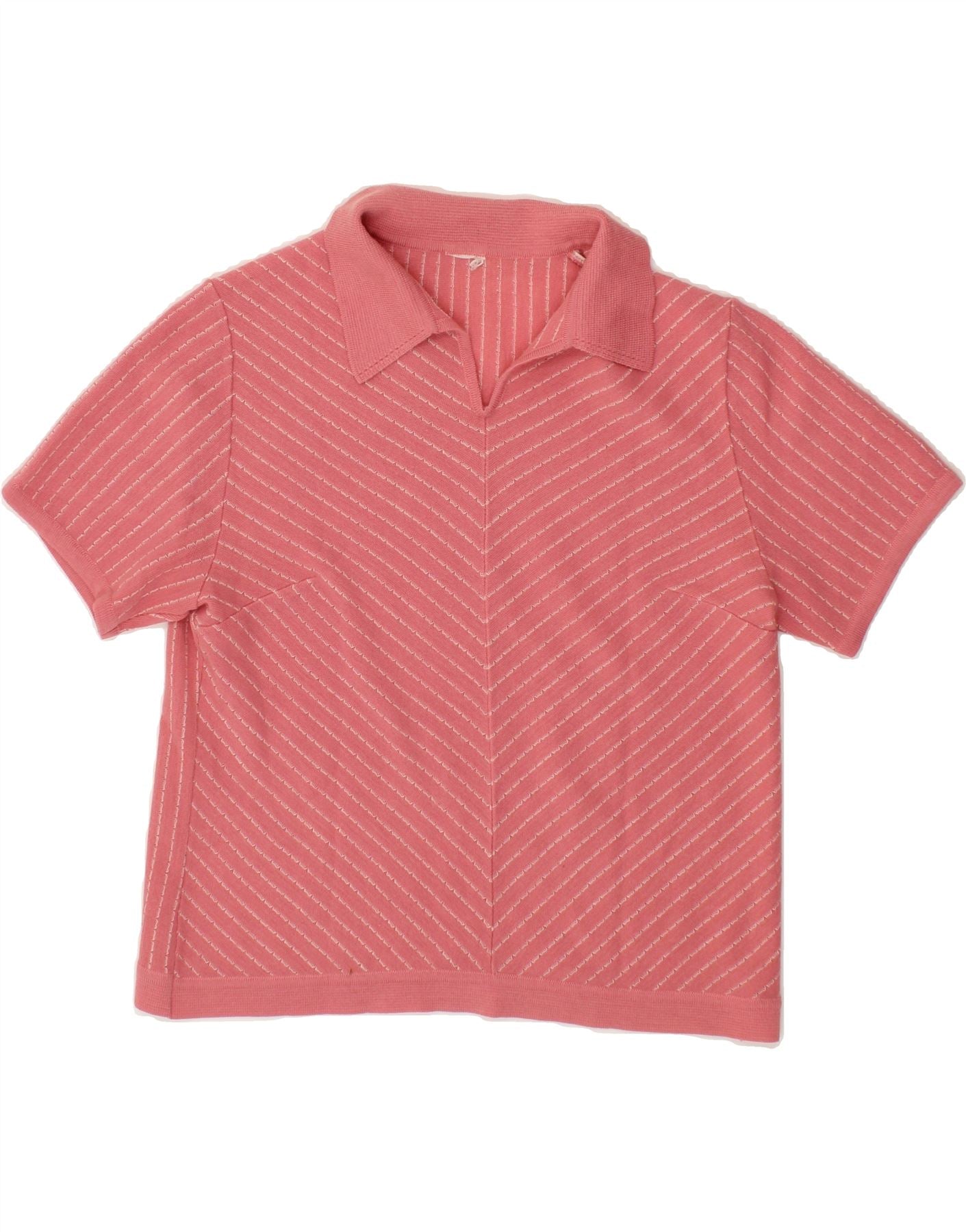 VINTAGE Womens Polo Neck Jumper Sweater UK 12 Medium Pink Pinstripe