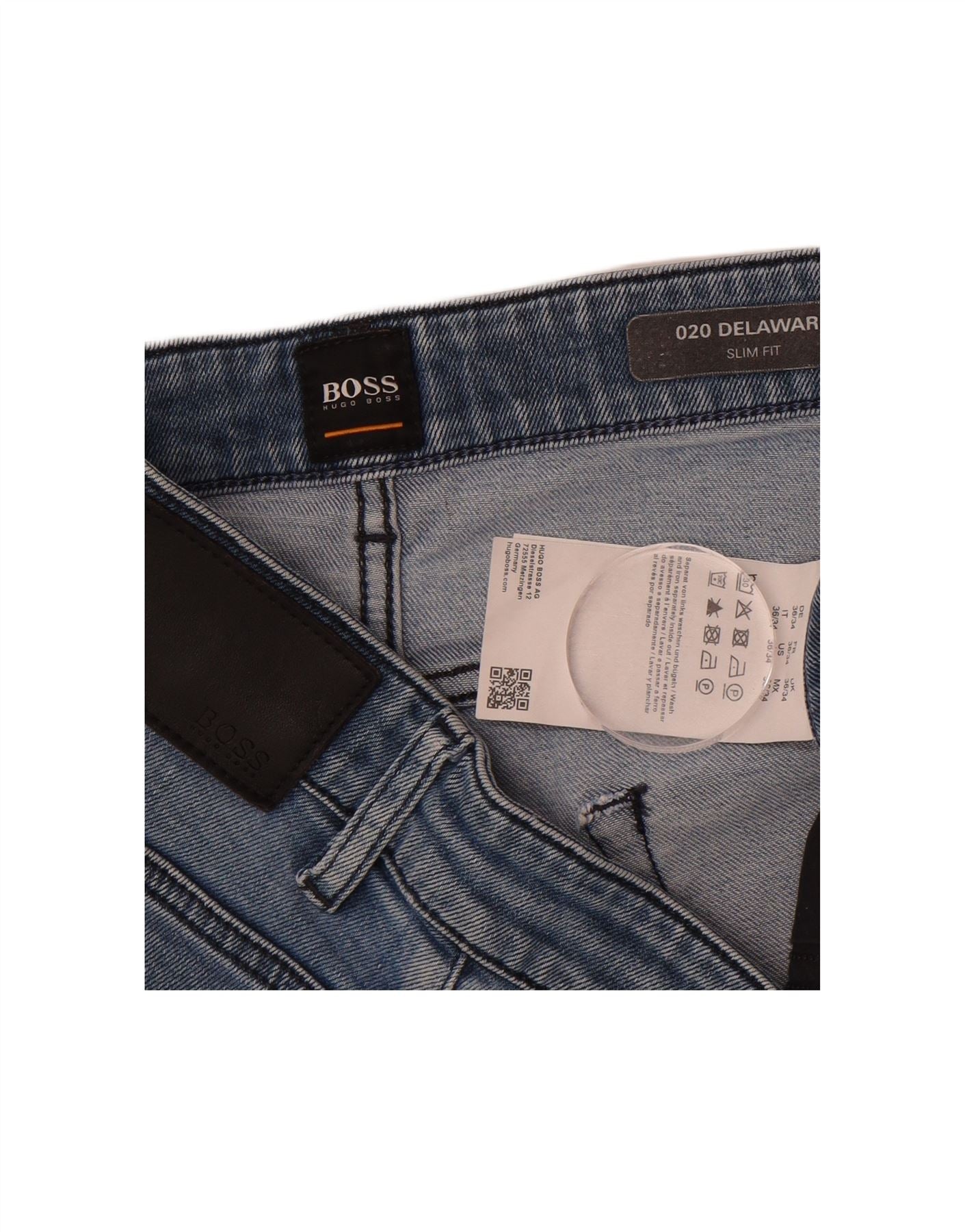 - AI Description: These Hugo Boss women's slim jeans are crafted from blue denim with a modern distressed finish. The fabric offers a comfortable stretch, ensuring a sleek slim fit. A mid-rise waist and button and zip closure create a smooth silhouette. Traditional five-pocket styling adds functionality. A subtle logo accent completes this contemporary design. The cut tapers cleanly for a refined look.