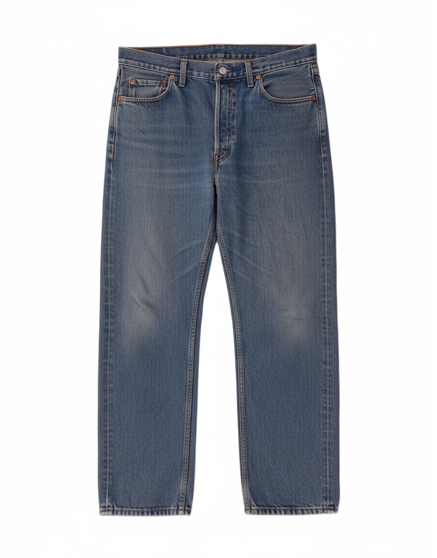 - AI Description: These Levi's men's 501 straight jeans are crafted from durable 100% cotton blue denim. They feature a classic straight leg and a comfortable regular fit. The traditional button fly closure provides a secure fastening. Authentic pockets offer practical utility, perfect for everyday wear. A subtle Levi's logo accent adds a signature touch. This timeless style offers enduring comfort and classic appeal for any wardrobe.