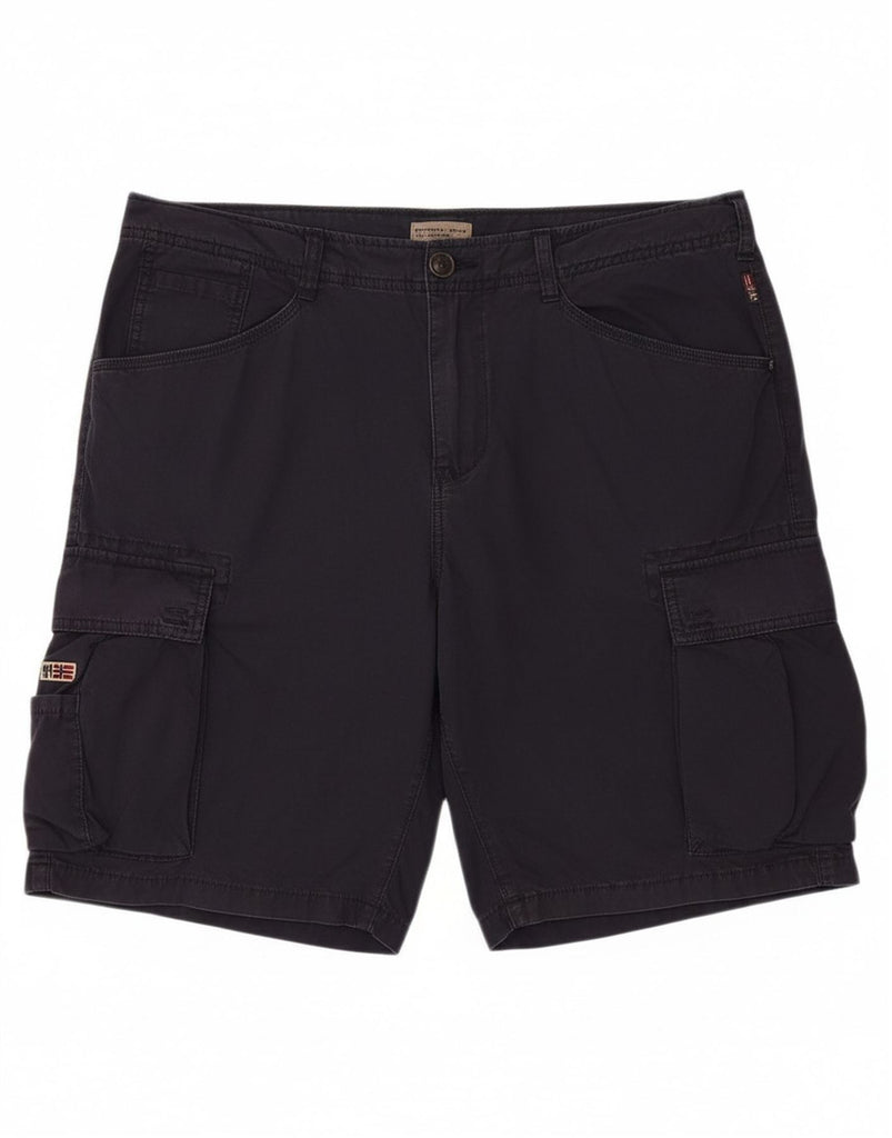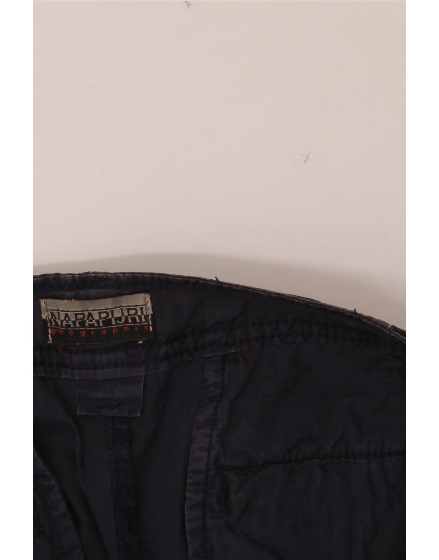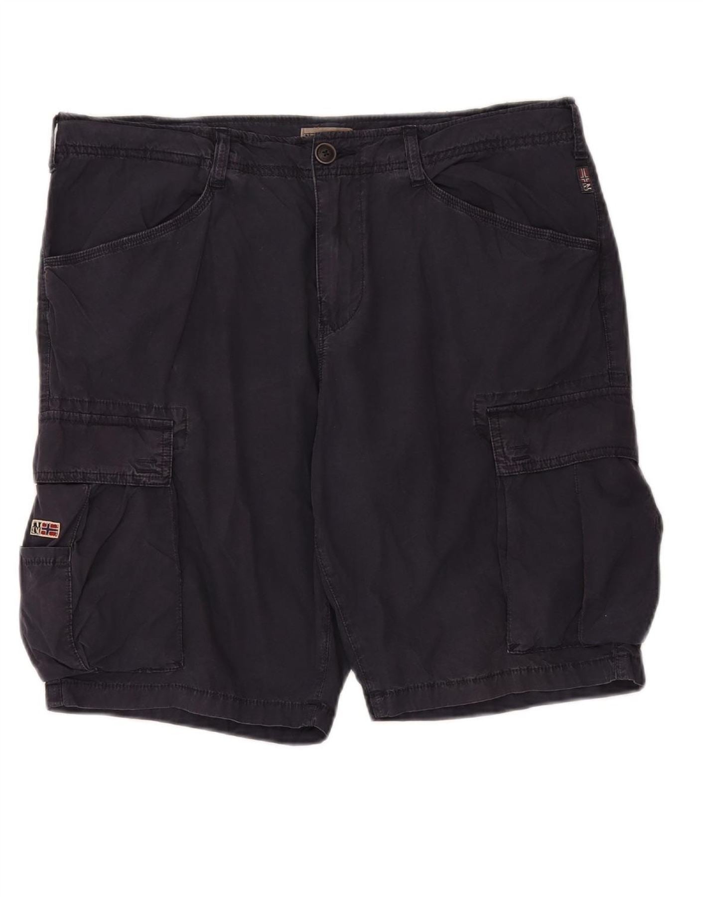 - AI Description: These Napapijri mens cargo shorts are crafted from a durable woven fabric in a versatile navy blue. They offer a regular fit, ensuring comfortable wear throughout the day. The design features a practical zip closure for ease. Multiple functional pockets provide ample storage. Subtle button accents add a refined, utilitarian touch. This modern style combines comfort with practical detailing for everyday wear.
