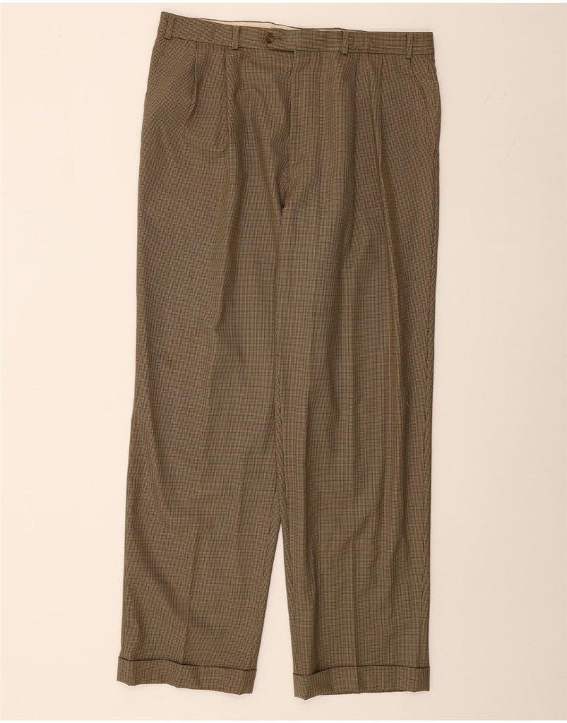 RALPH LAUREN Mens Pegged Suit Trousers W36 L32 Brown Houndstooth Cashmere