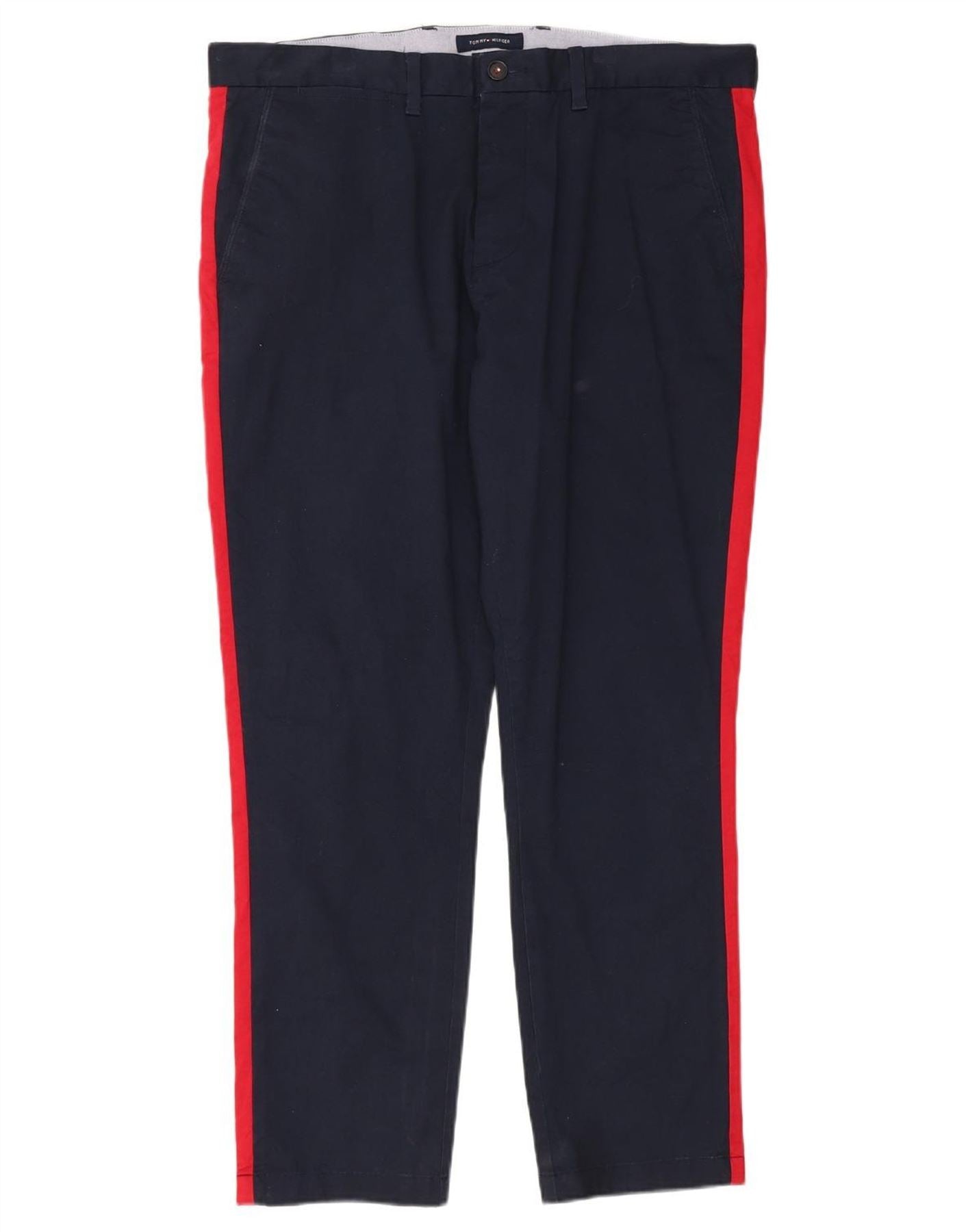 TOMMY HILFIGER Mens Slim Fit Chino Trousers W36 L30 Navy Blue Colourblock
