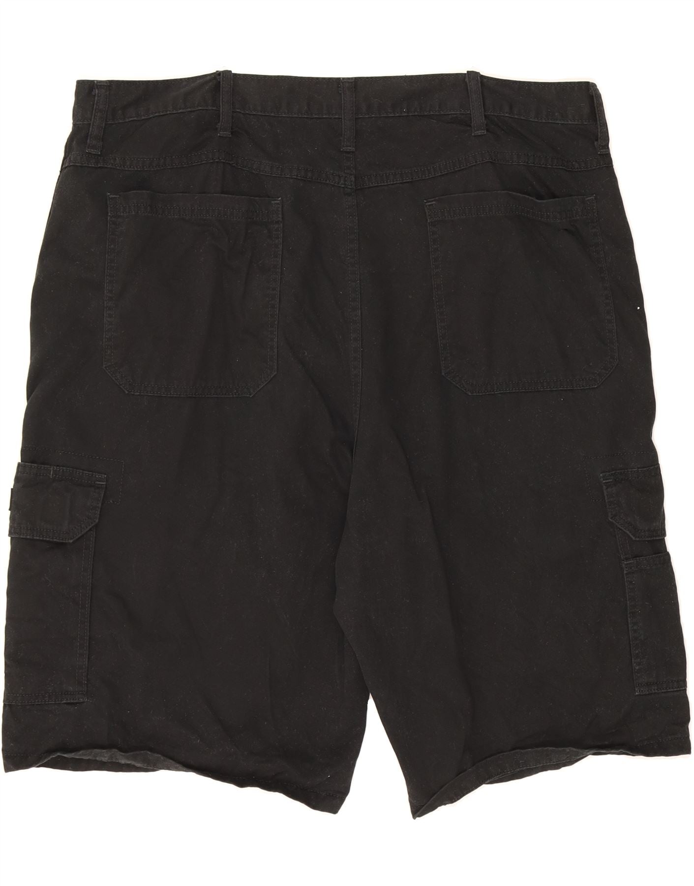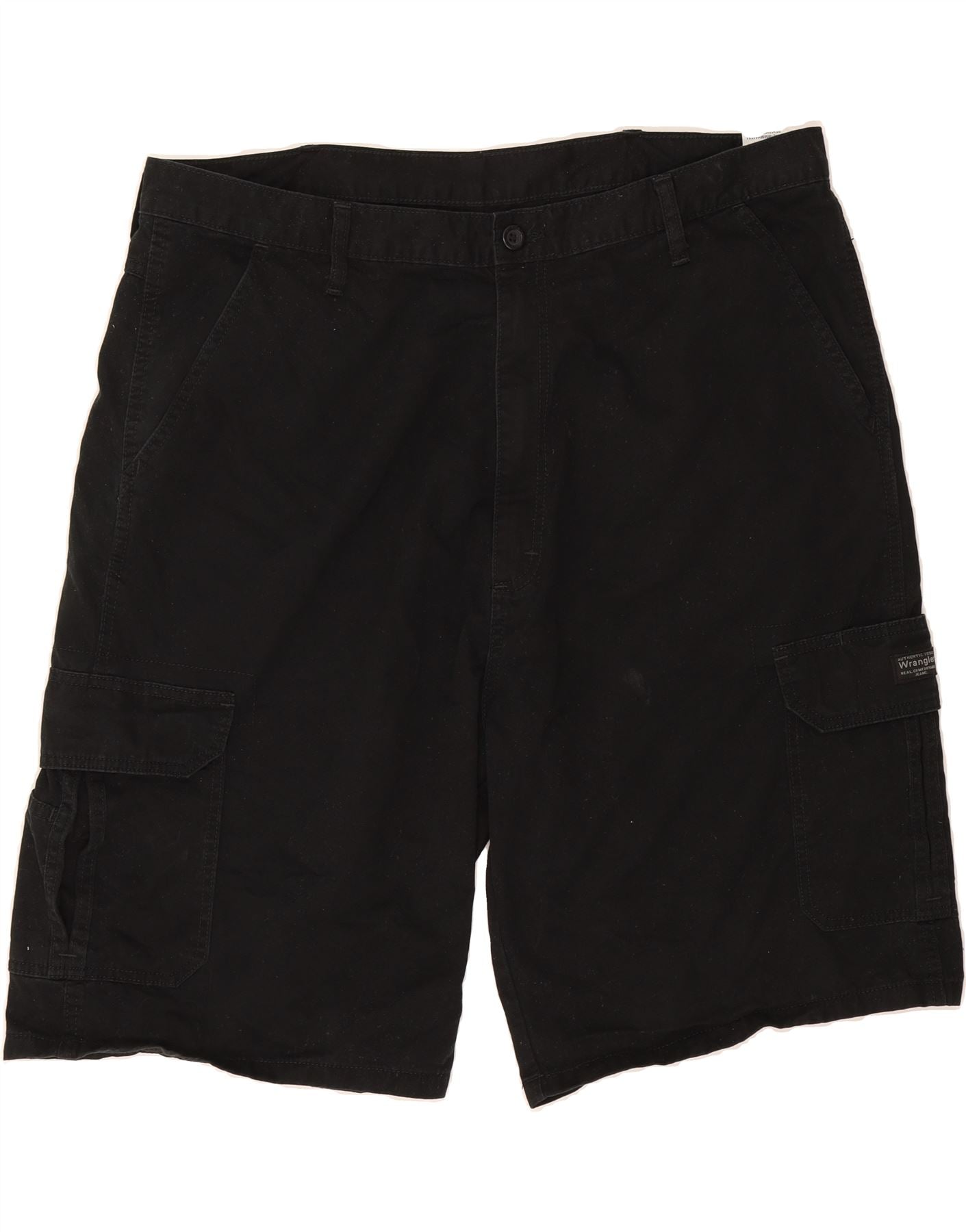- AI Description: Wrangler men's black cargo shorts in pre-owned excellent condition. Crafted in a corduroy fabric, these army-style shorts feature a regular fit, button closure, and practical pockets. Minor visible wear and stains on the front. Accented with buttons, these shorts also boast an adjustable waist for added comfort. A versatile addition to any wardrobe.