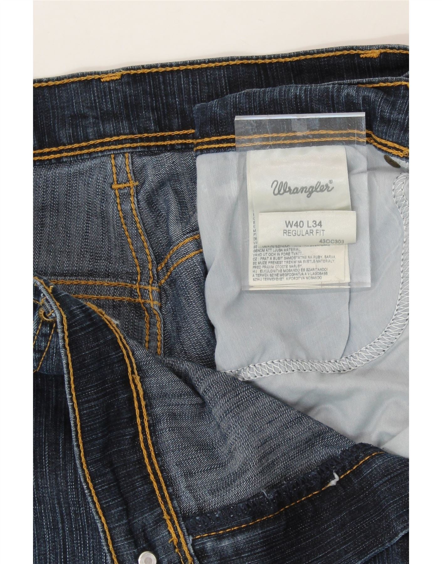 WRANGLER Mens Regular Fit Straight Jeans W40 L34 Navy Blue Cotton