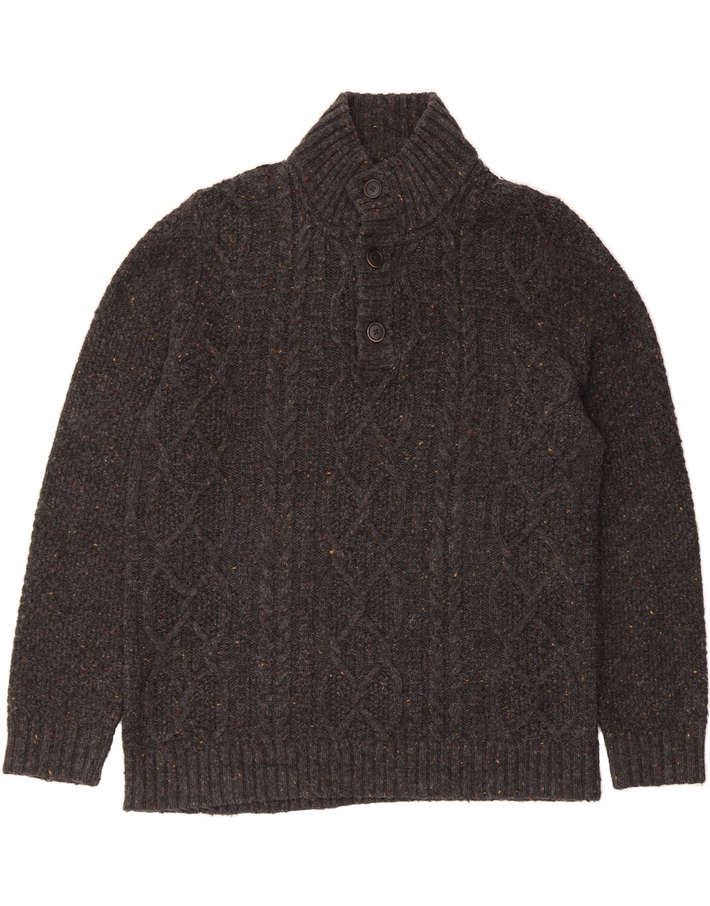 FAT FACE Mens Button Neck Jumper Sweater XL Grey Flecked Wool