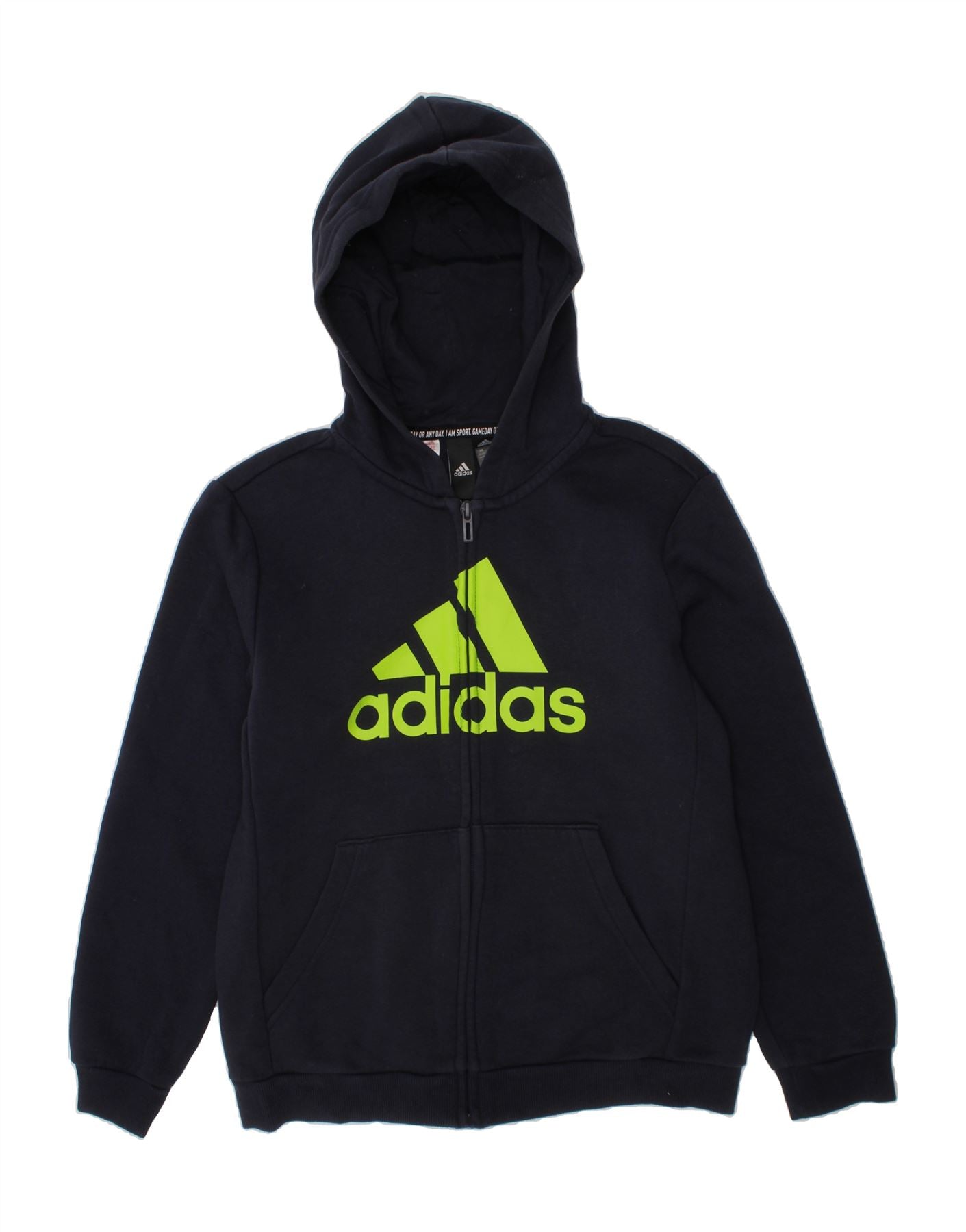 ADIDAS Boys Graphic Zip Hoodie Sweater 11-12 Years Navy Blue Cotton