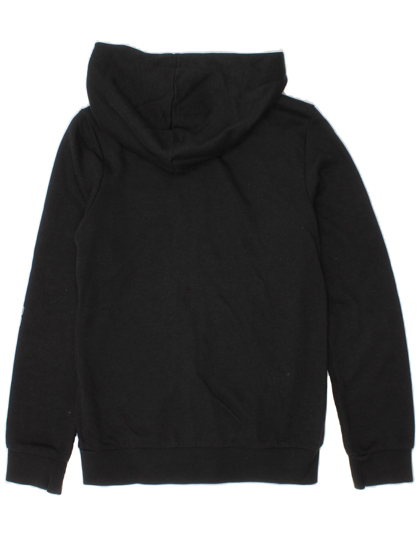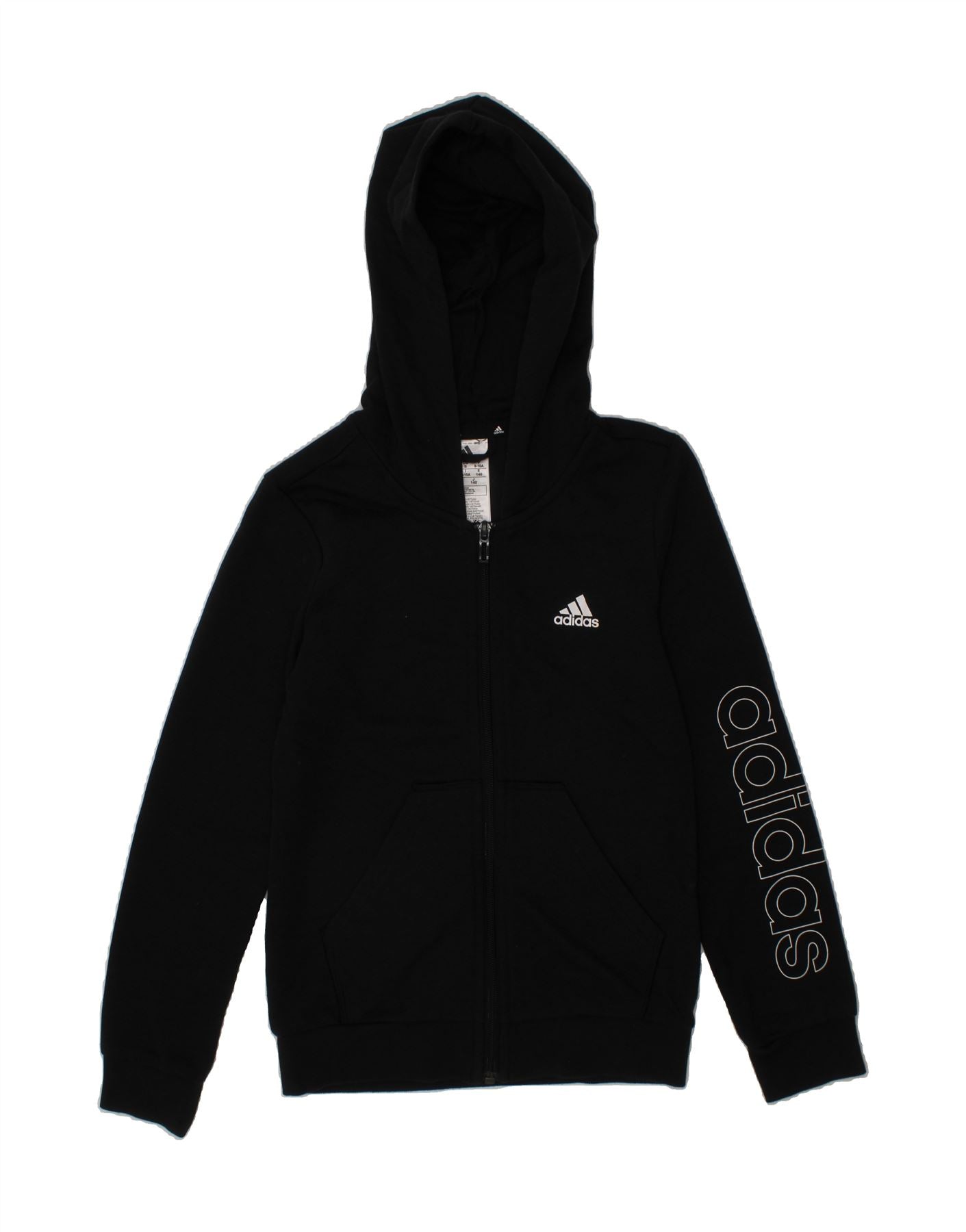 ADIDAS Girls Graphic Zip Hoodie Sweater 9-10 Years Black Cotton