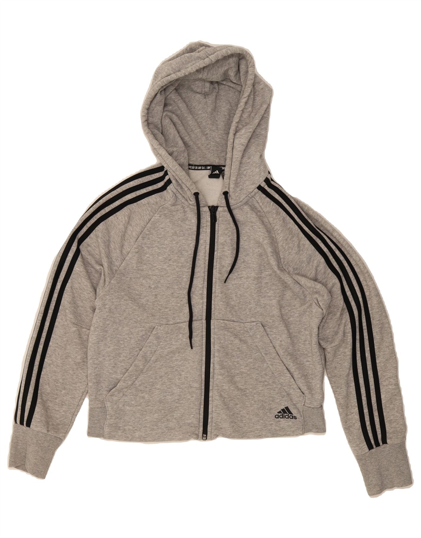 ADIDAS Womens Oversized Zip Hoodie Sweater UK 8/10 Small Grey Cotton