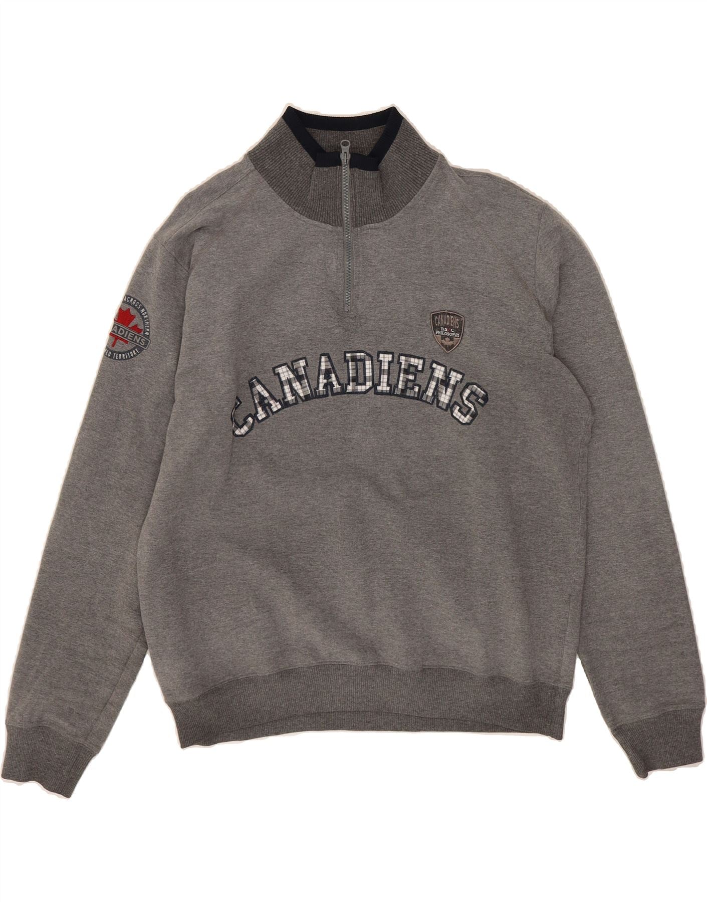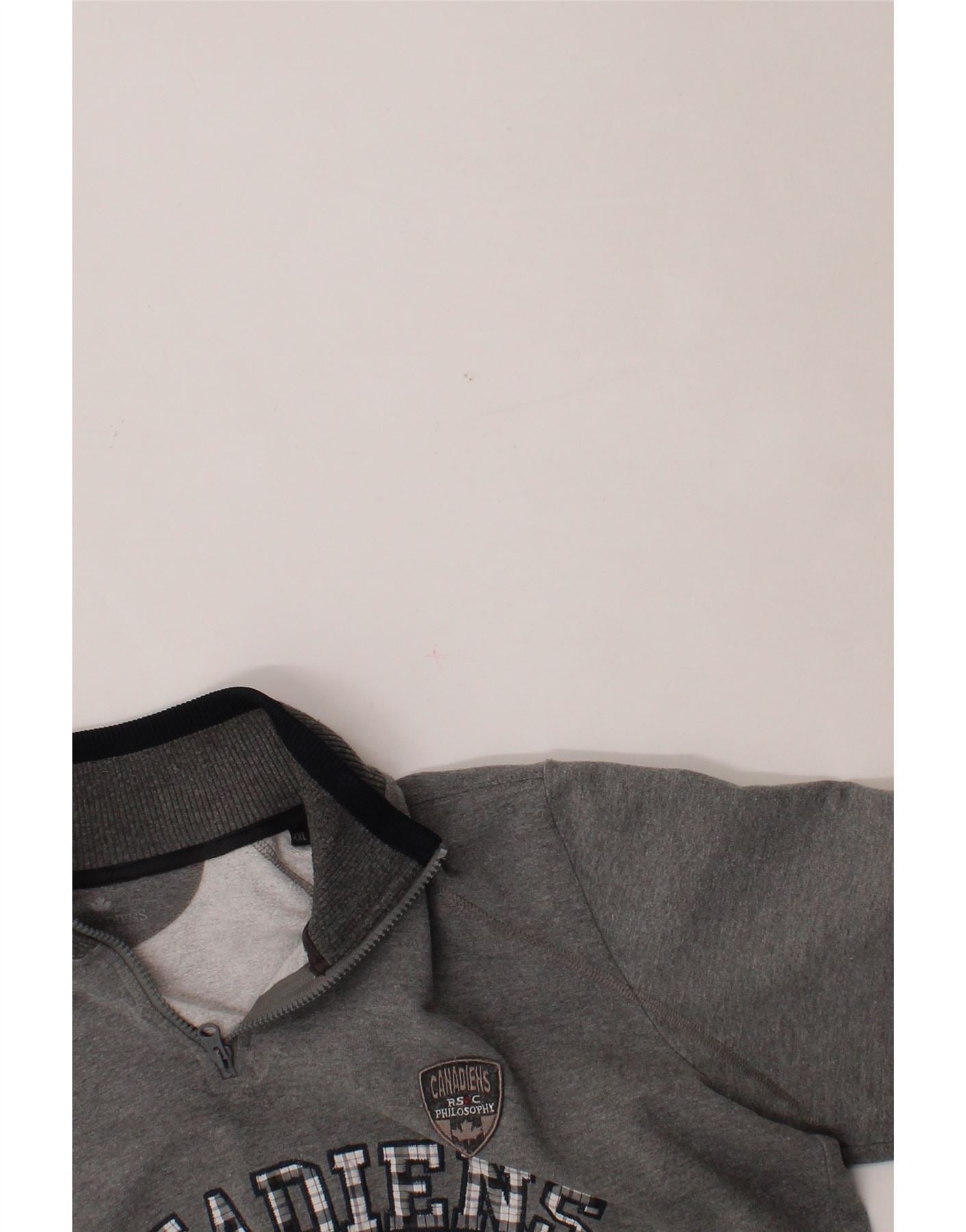 CANADIENS Mens Graphic Zip Neck Sweatshirt Jumper 2XL Grey Cotton
