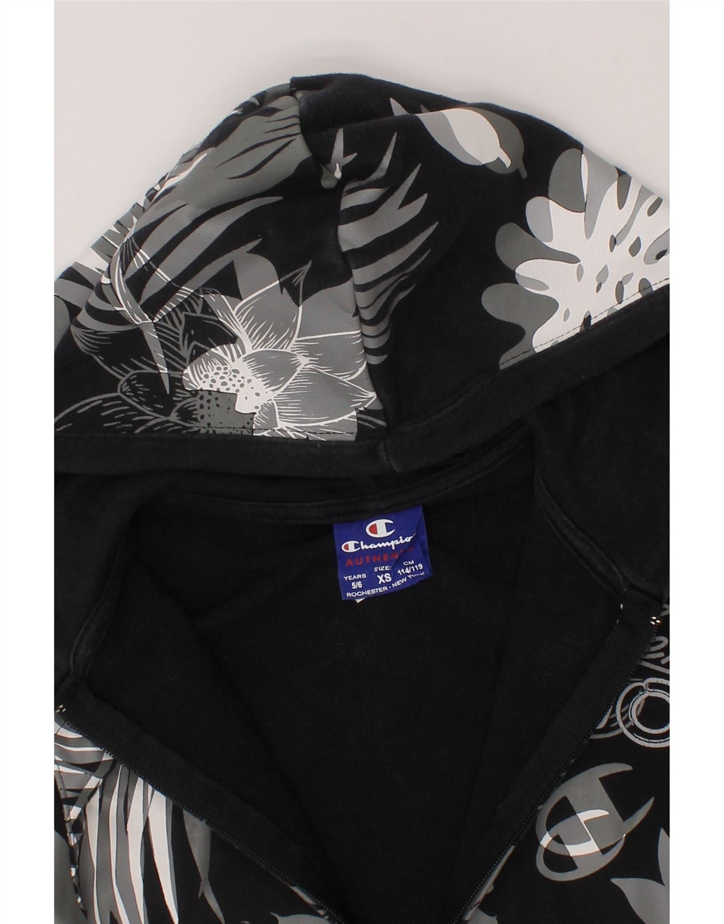 CHAMPION Girls Zip Hoodie Sweater 5-6 Years XS Black Floral