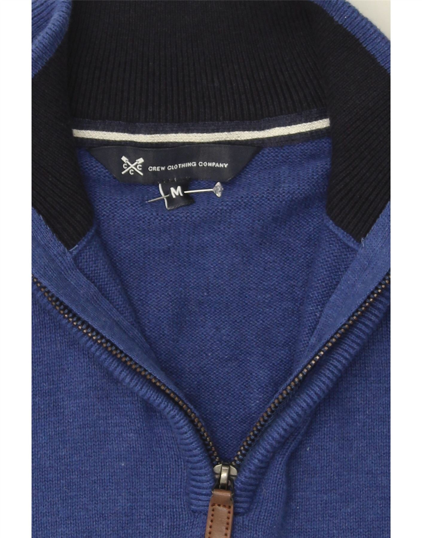 CREW CLOTHING Mens Zip Neck Jumper Sweater Medium Blue Cotton