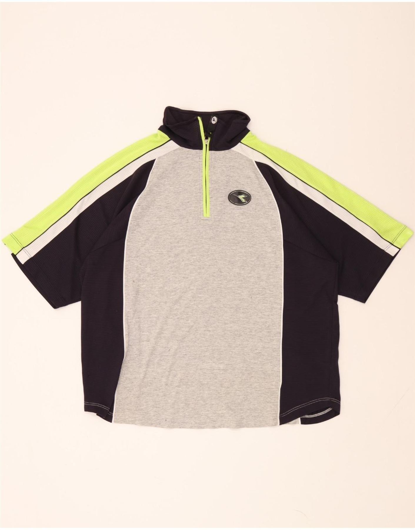 DIADORA Mens Zip Neck Pullover Tracksuit Top XL Grey Colourblock