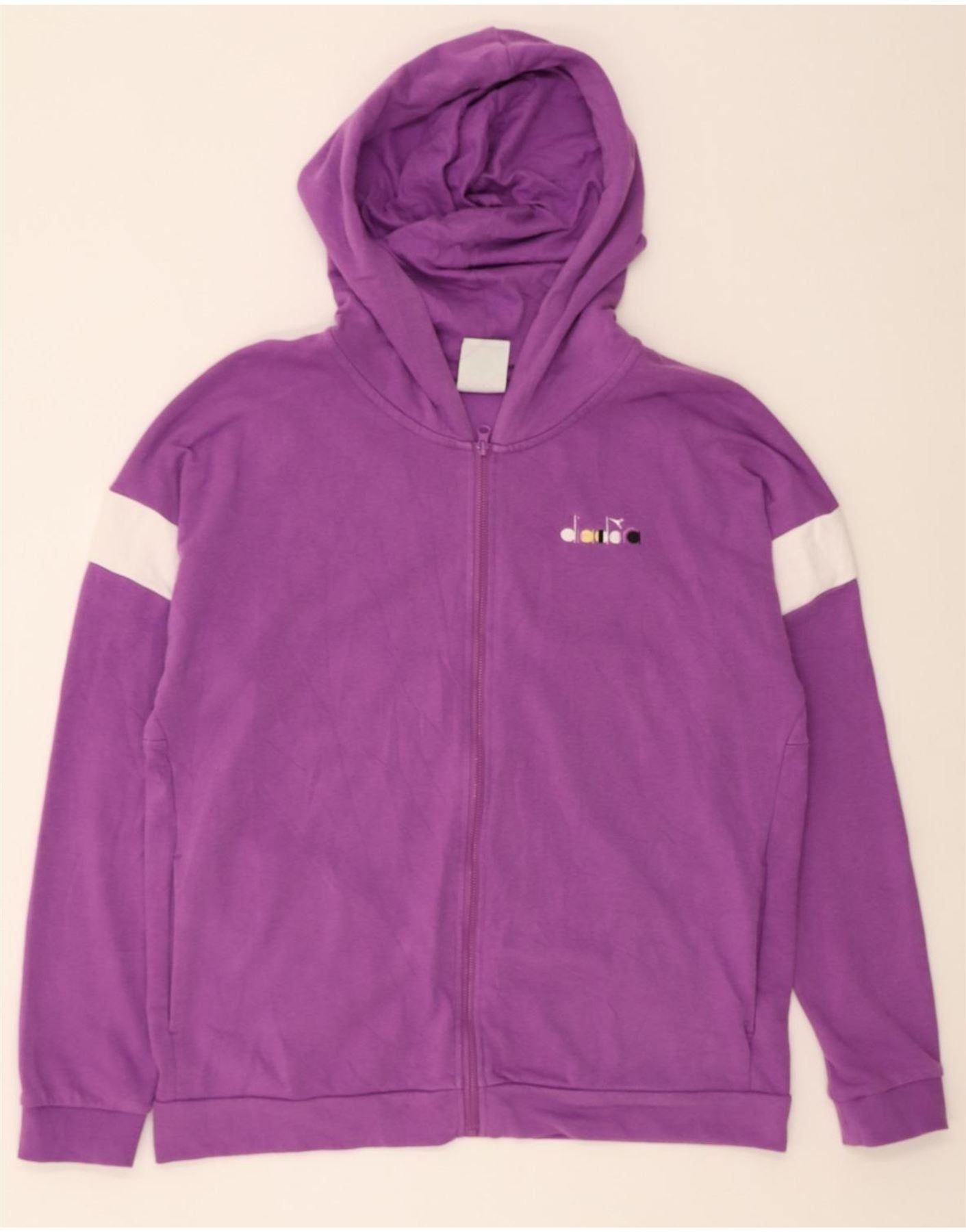 DIADORA Womens Zip Hoodie Sweater UK 16 Large Purple Colourblock Cotton