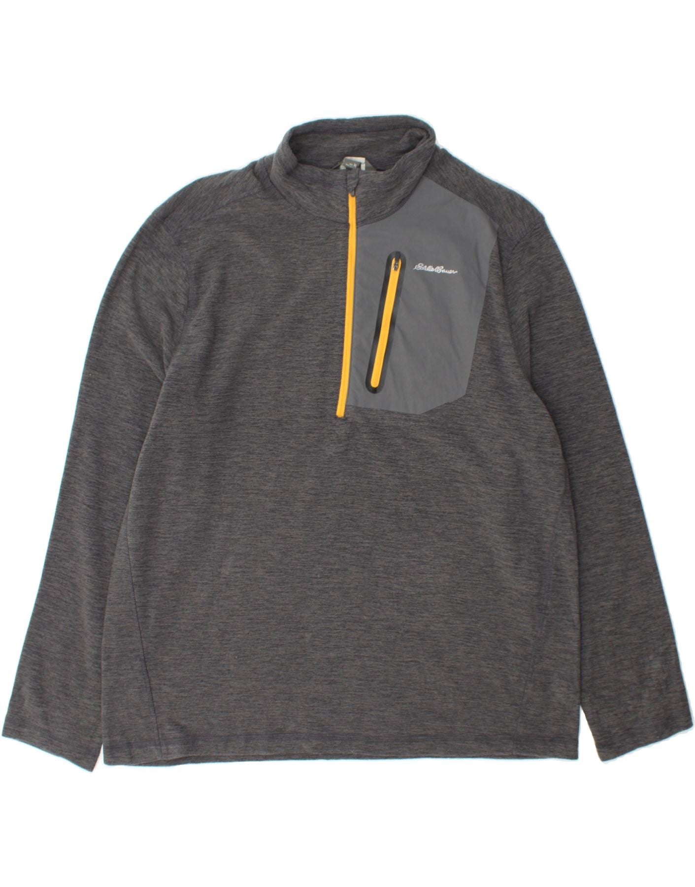 EDDIE BAUER Mens Zip Neck Jumper Sweater XL Grey Flecked Polyester