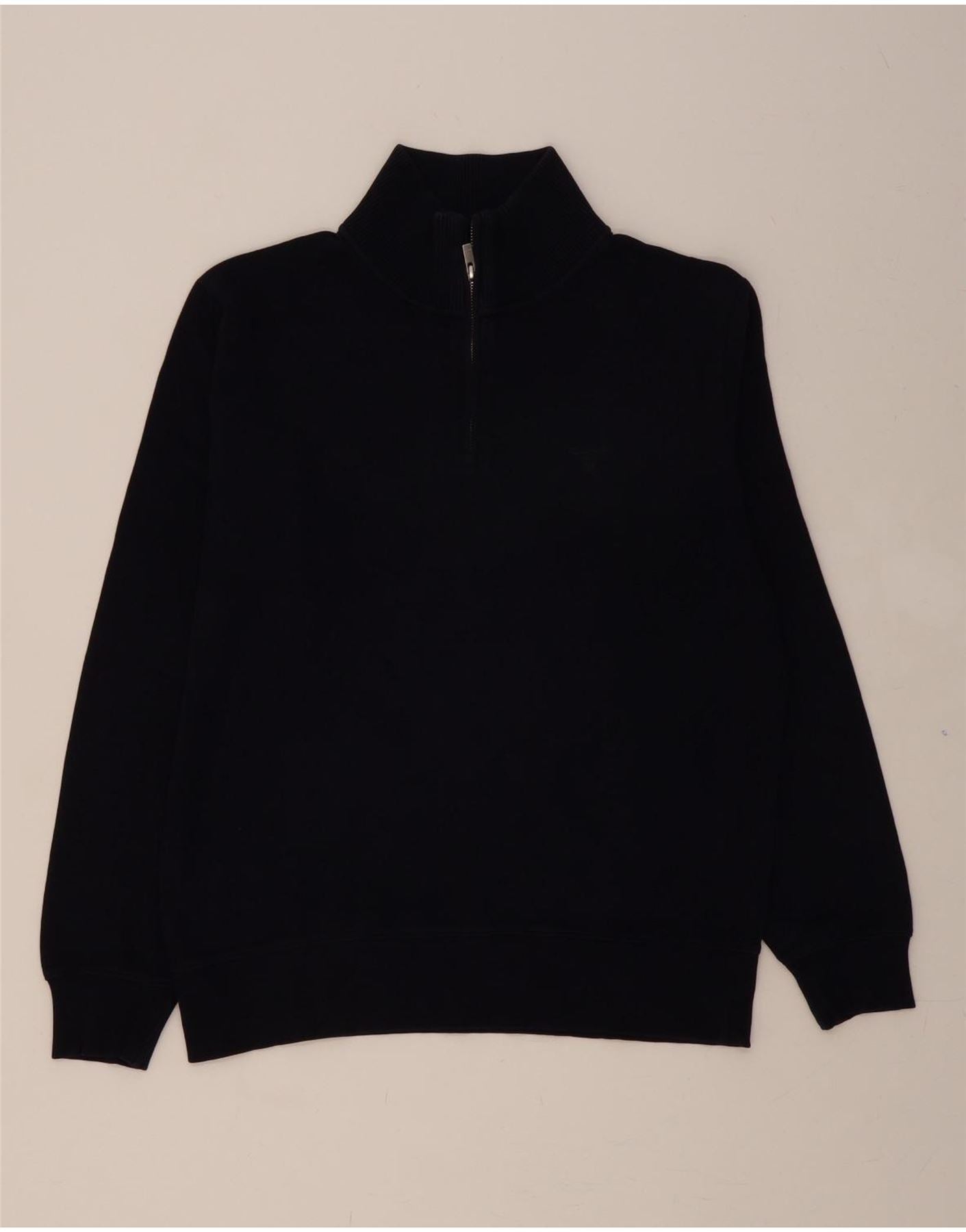 GANT Mens Zip Neck Jumper Sweater Large Navy Blue Cotton