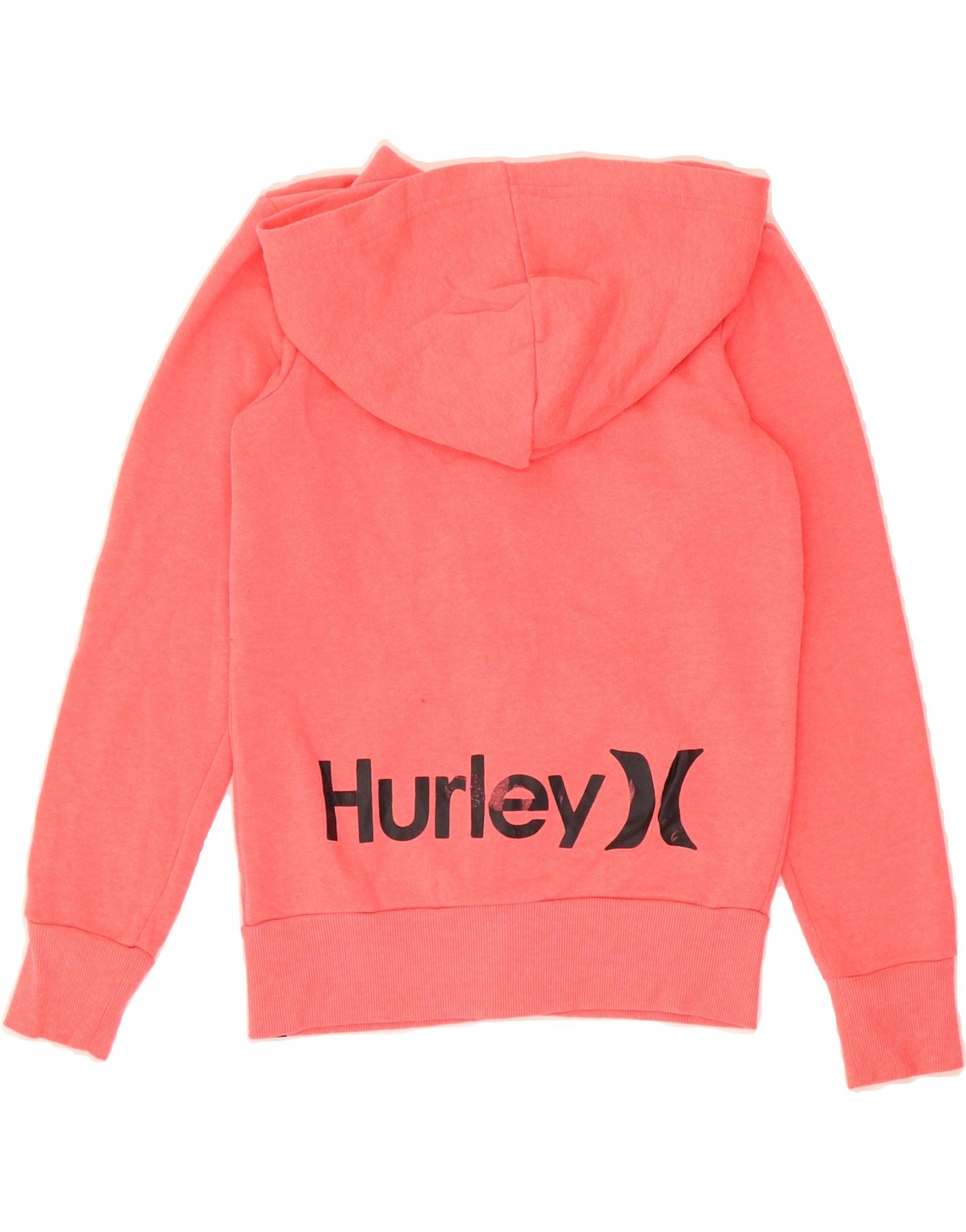 HURLEY Girls Graphic Zip Hoodie Sweater 10-11 Years Medium Pink Polyester