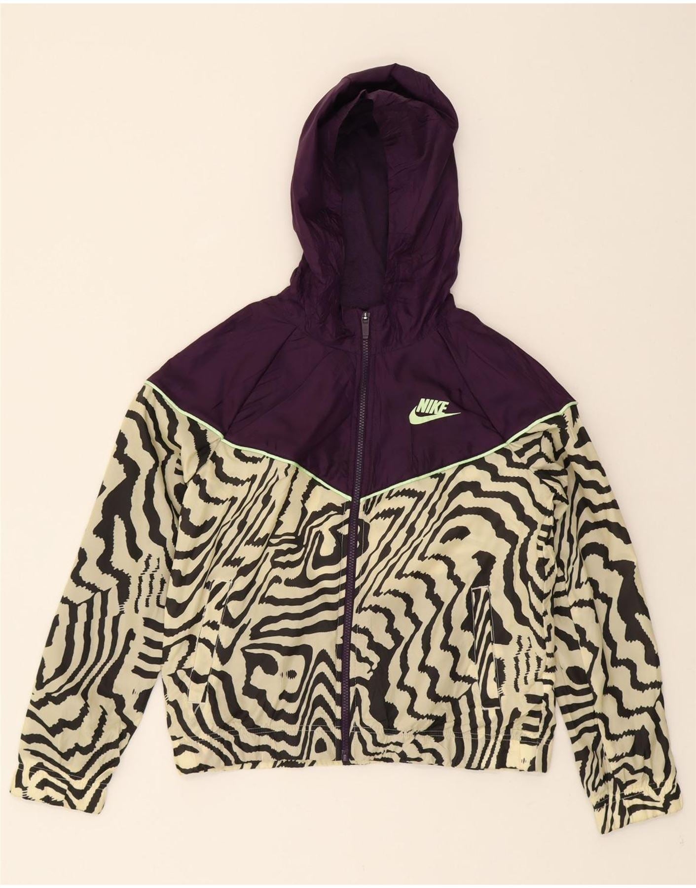 NIKE Girls Zip Hoodie Sweater 13-14 Years XL Purple Animal Print