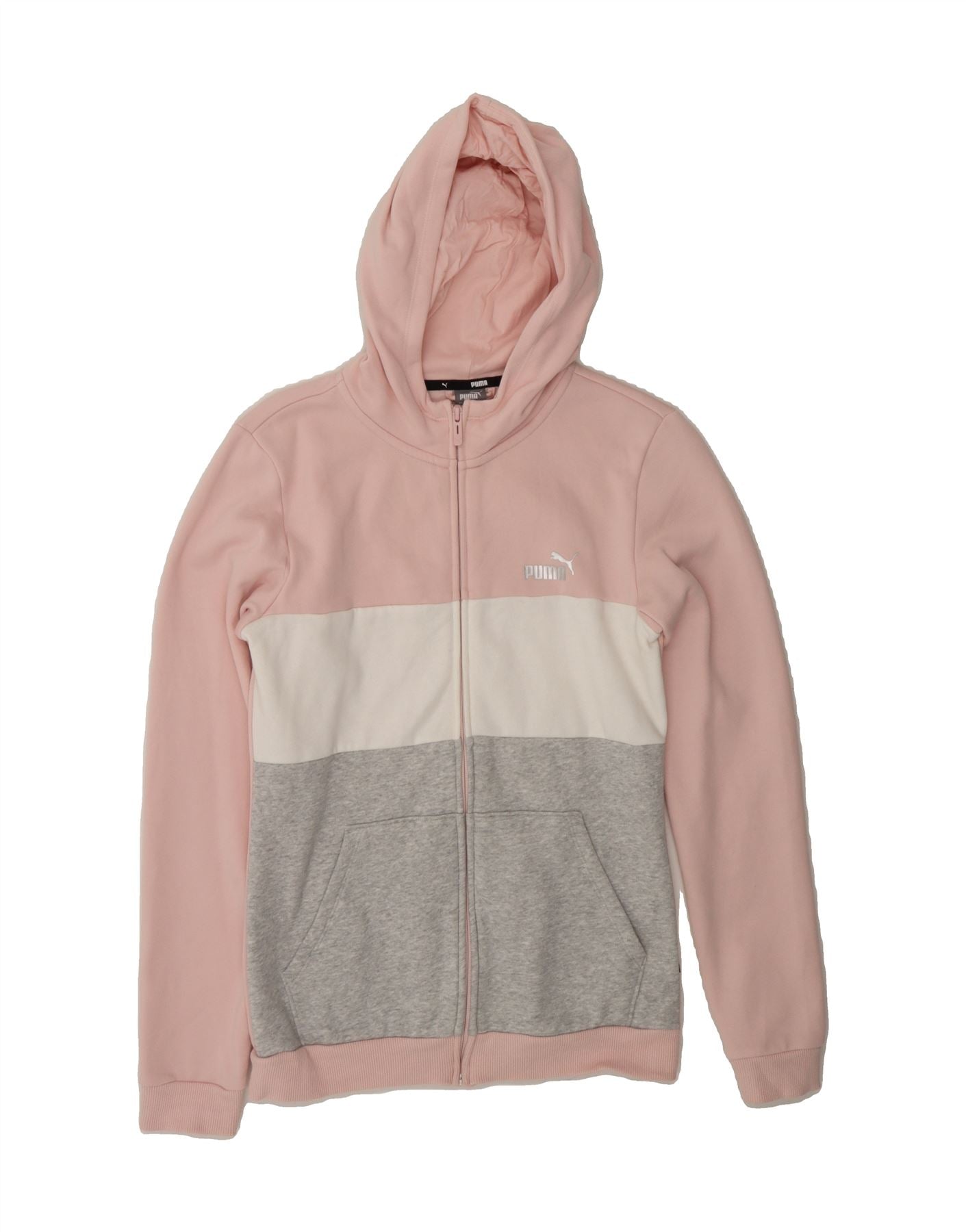 PUMA Girls Zip Hoodie Sweater 15-16 Years Pink Colourblock Cotton