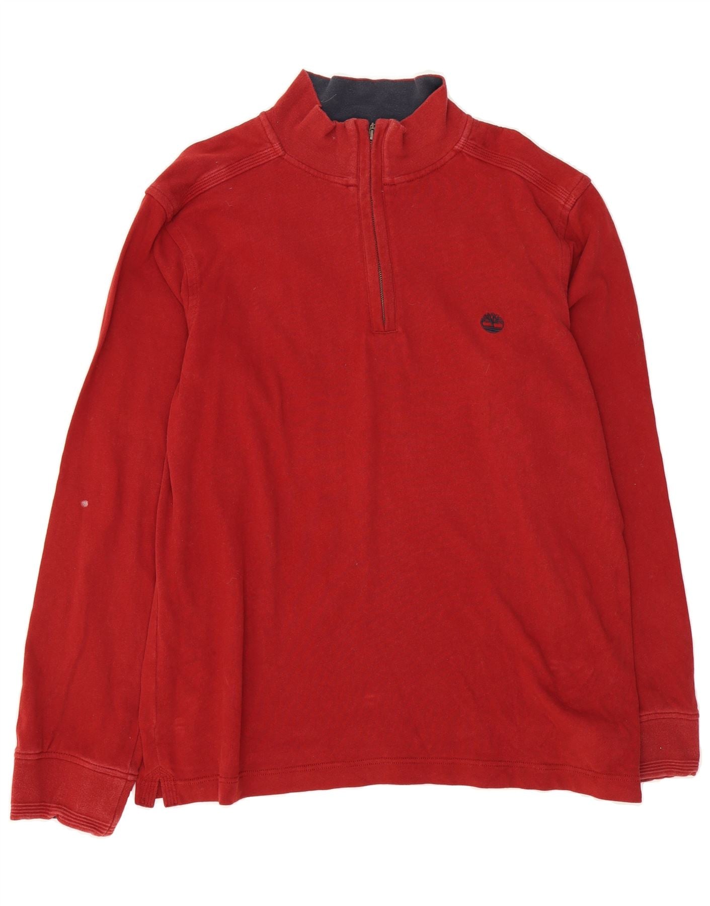 TIMBERLAND Mens Regular Fit Zip Neck Sweatshirt Jumper 2XL Red Cotton