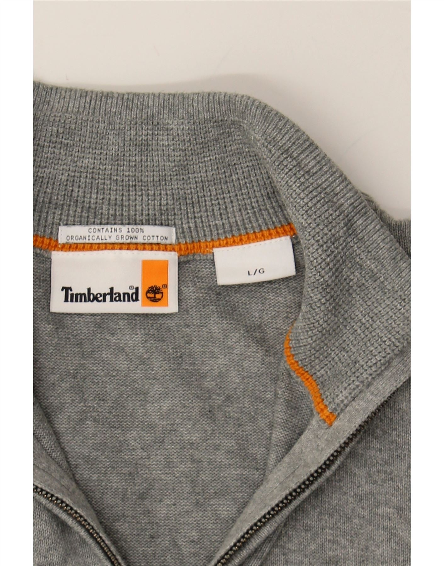 TIMBERLAND Mens Zip Neck Jumper Sweater Large Grey Cotton