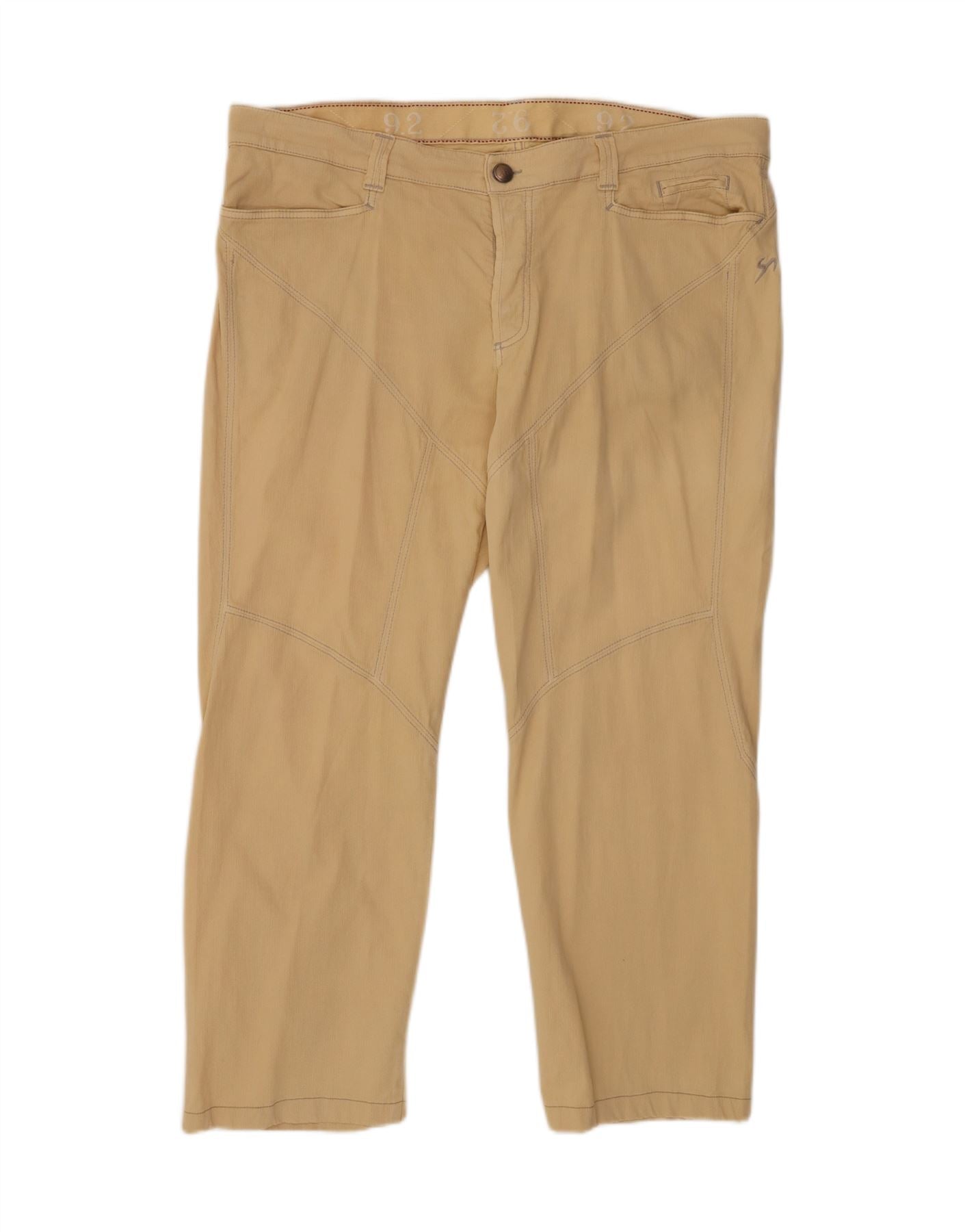 9.2 BY CARLO CHIONNA Mens Straight Casual Trousers W42 L28 Beige Cotton