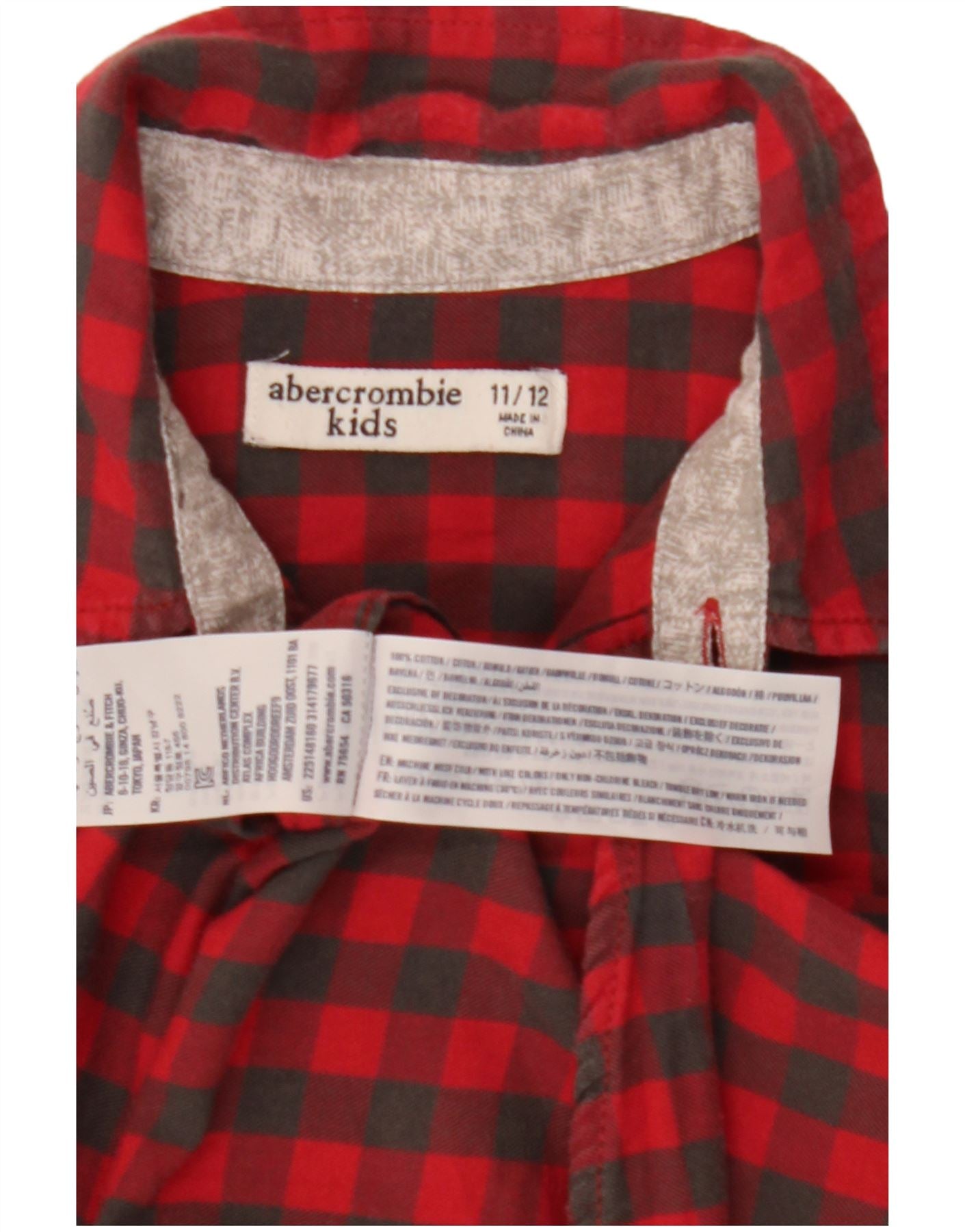 ABERCROMBIE & FITCH Boys Flannel Shirt 11-12 Years Red Gingham Cotton