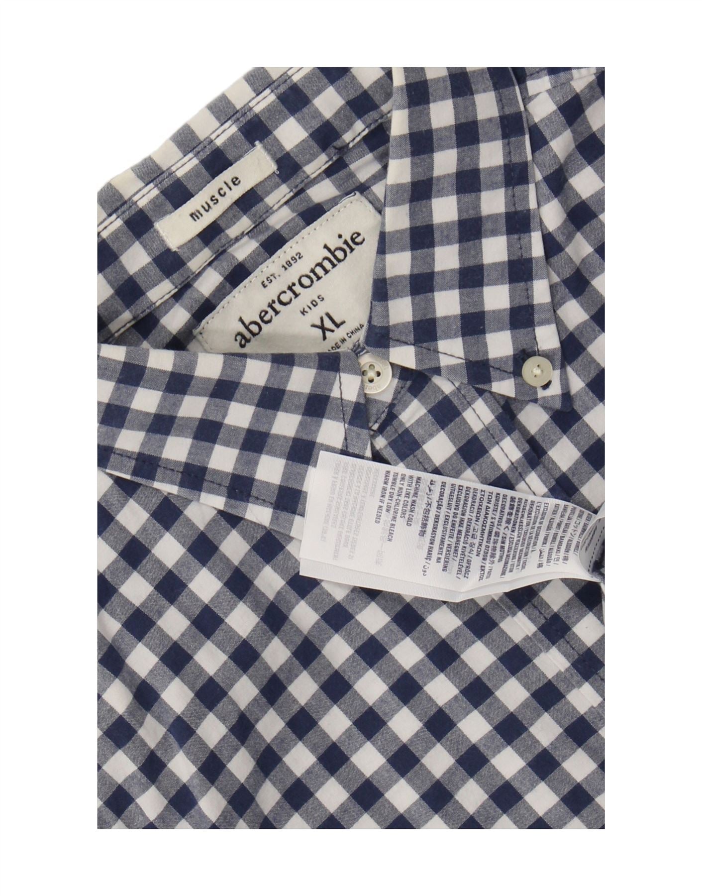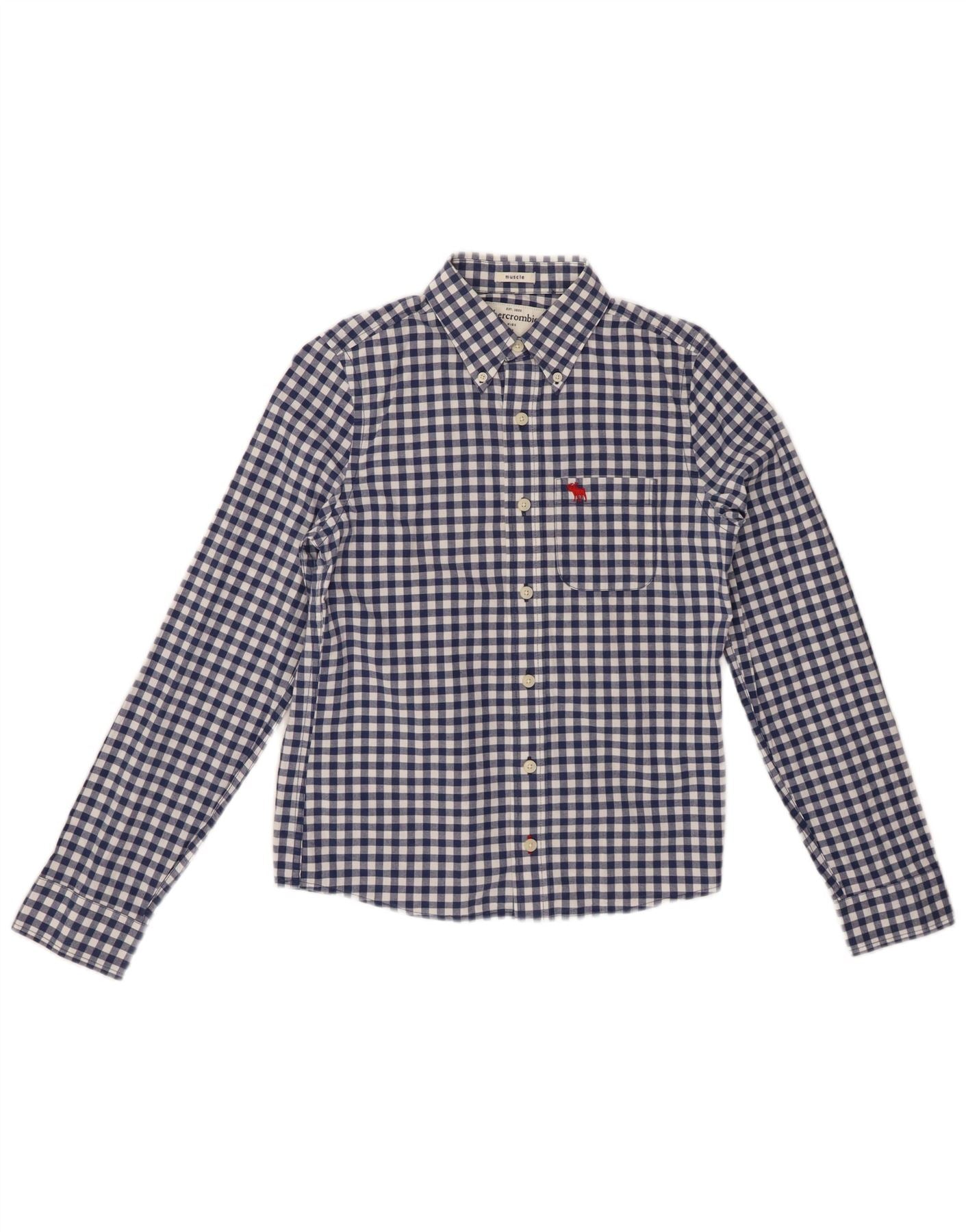 ABERCROMBIE & FITCH Boys Muscle Shirt 12-13 Years XL Navy Blue Check
