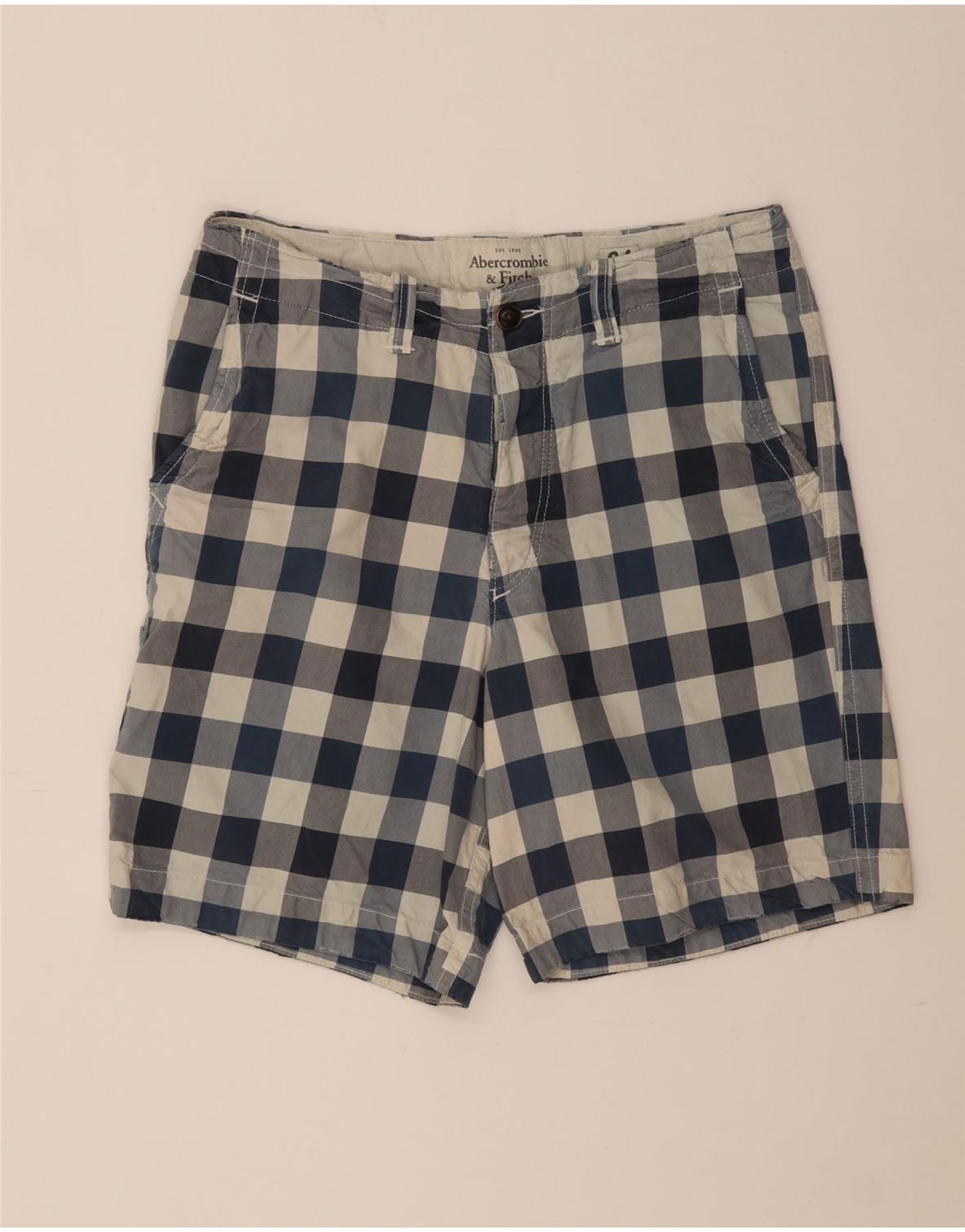 ABERCROMBIE & FITCH Mens Chino Shorts W34 Large Navy Blue Gingham