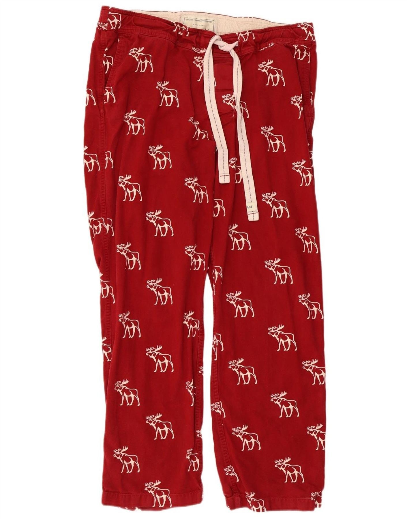 ABERCROMBIE & FITCH Mens Graphic Casual Trousers Large W36 L31 Red