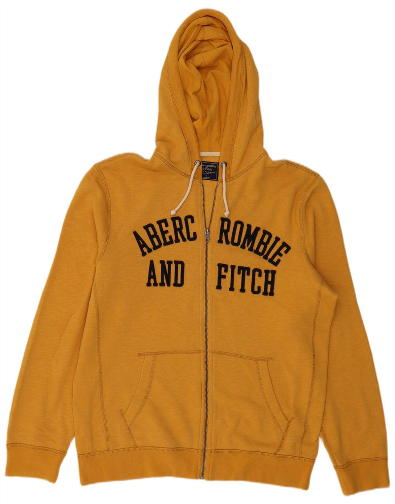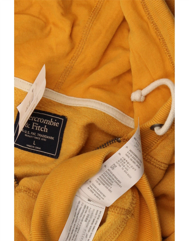 ABERCROMBIE & FITCH Mens Graphic Zip Hoodie Sweater Large Yellow Cotton