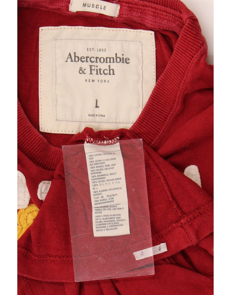ABERCROMBIE & FITCH Mens Muscle Graphic T-Shirt Top Large Red Cotton