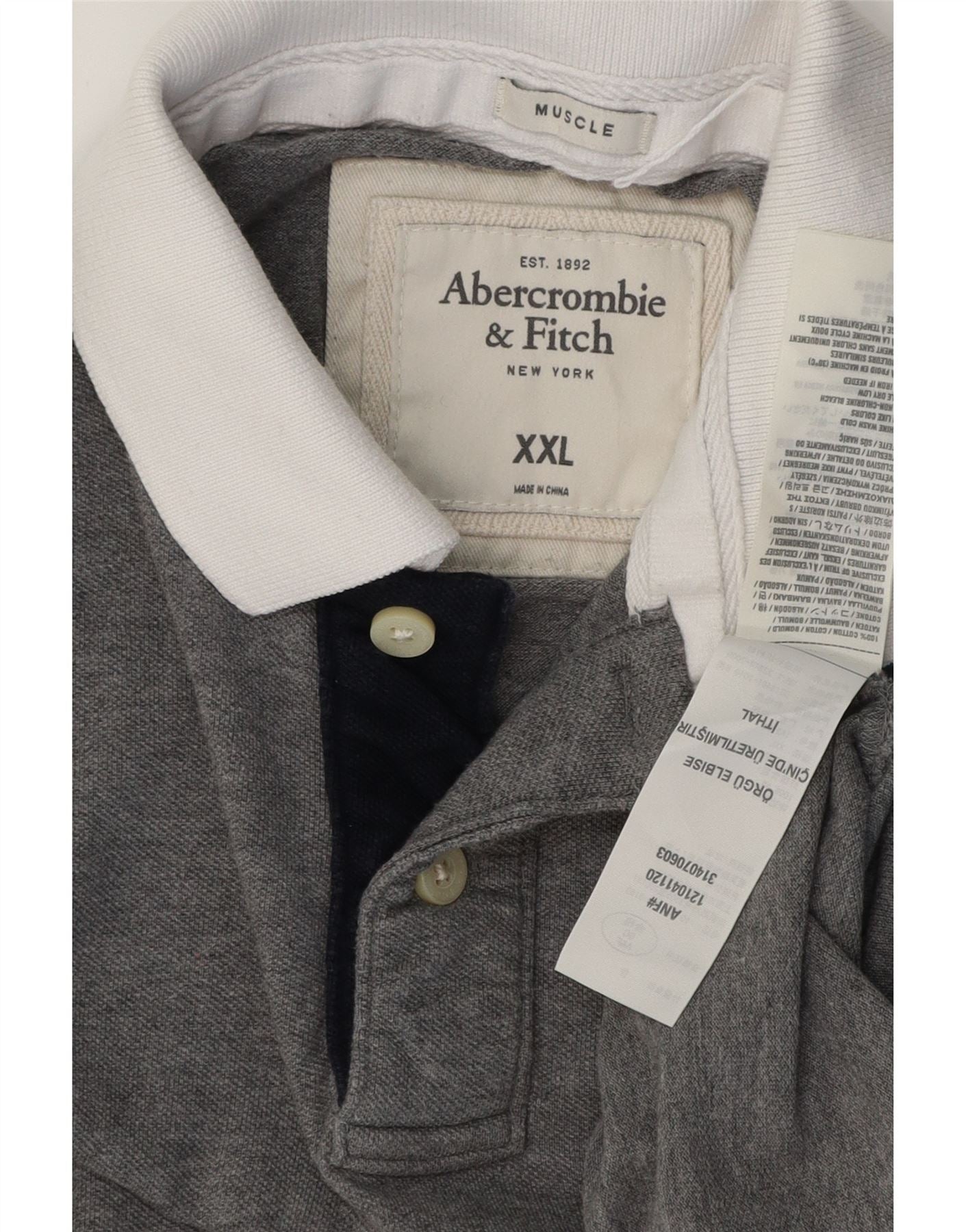 ABERCROMBIE & FITCH Mens Muscle Polo Shirt 2XL Grey Cotton