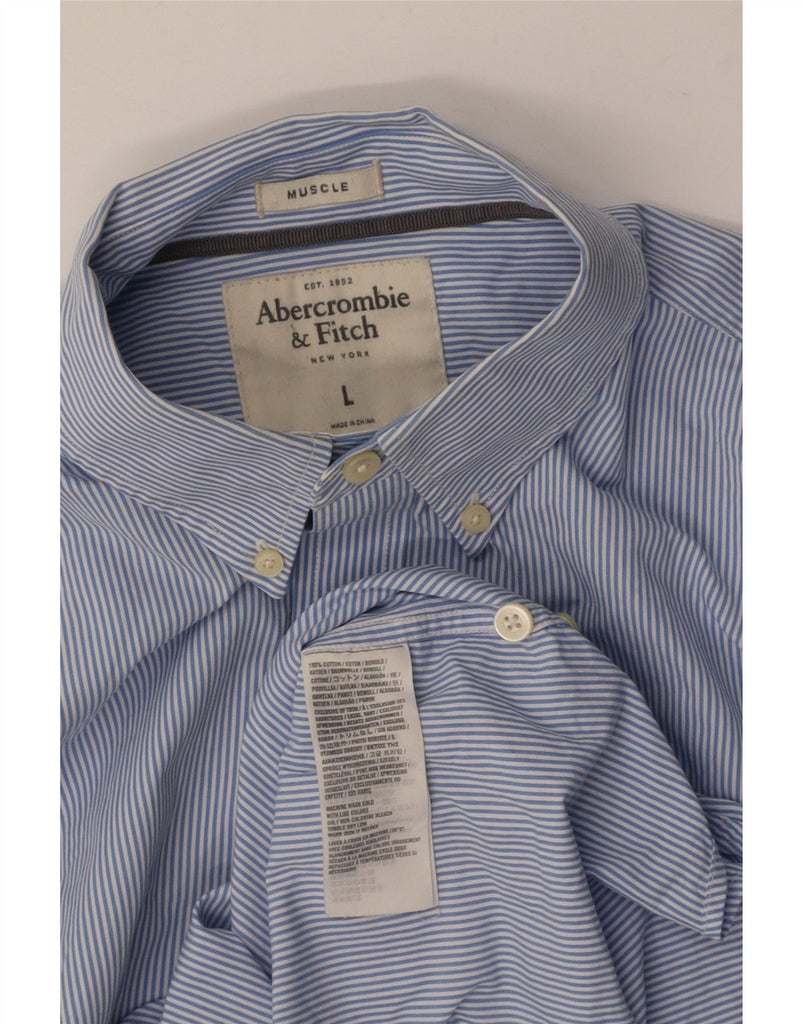 ABERCROMBIE & FITCH Mens Muscle Shirt Large Blue Pinstripe Cotton
