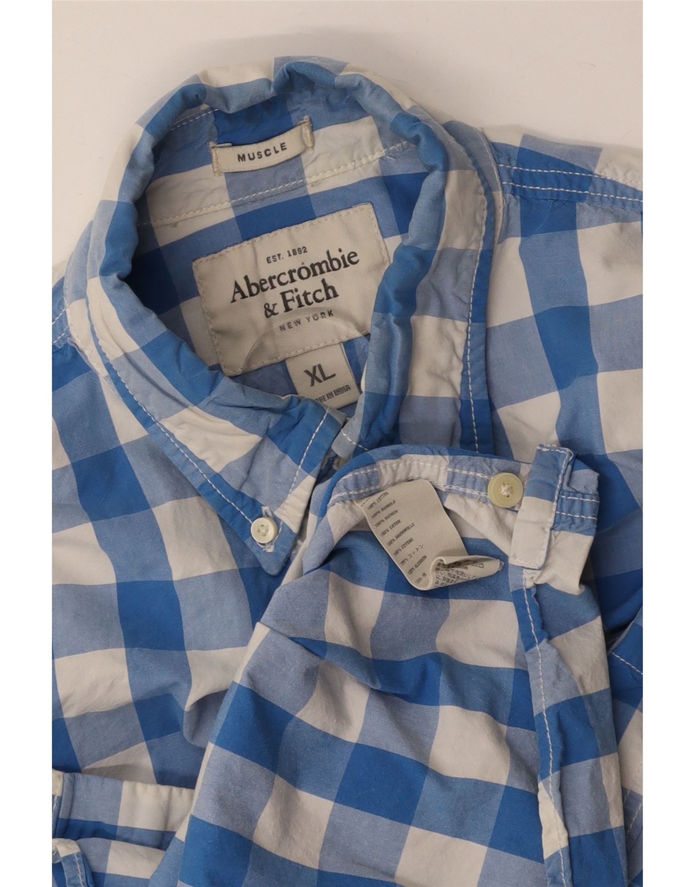 ABERCROMBIE & FITCH Mens Muscle Shirt XL Blue Check Cotton