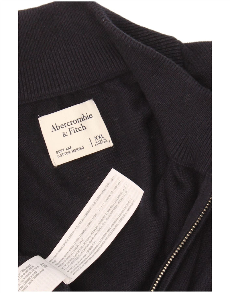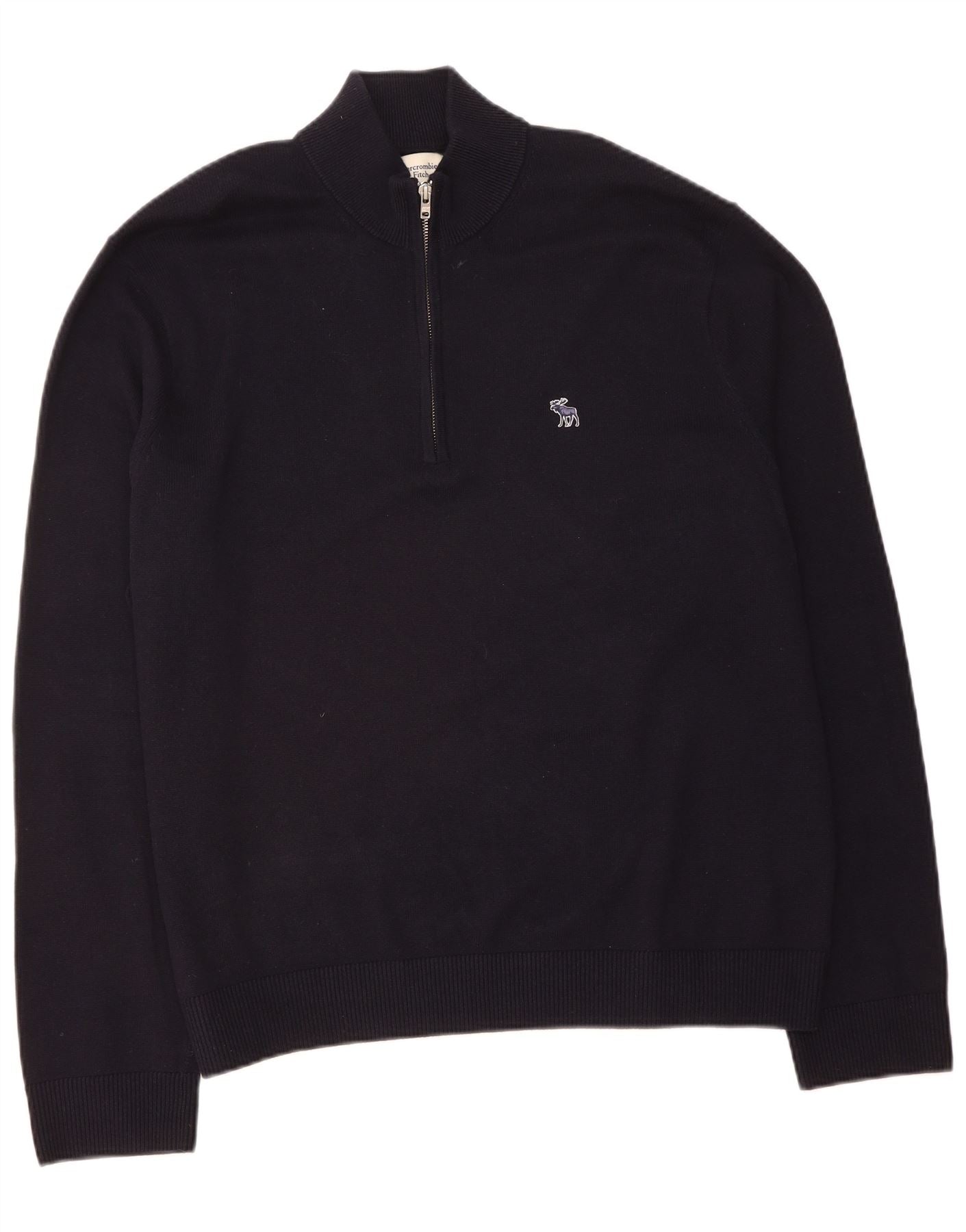 ABERCROMBIE & FITCH Mens Zip Neck Jumper Sweater 2XL Navy Blue Cotton