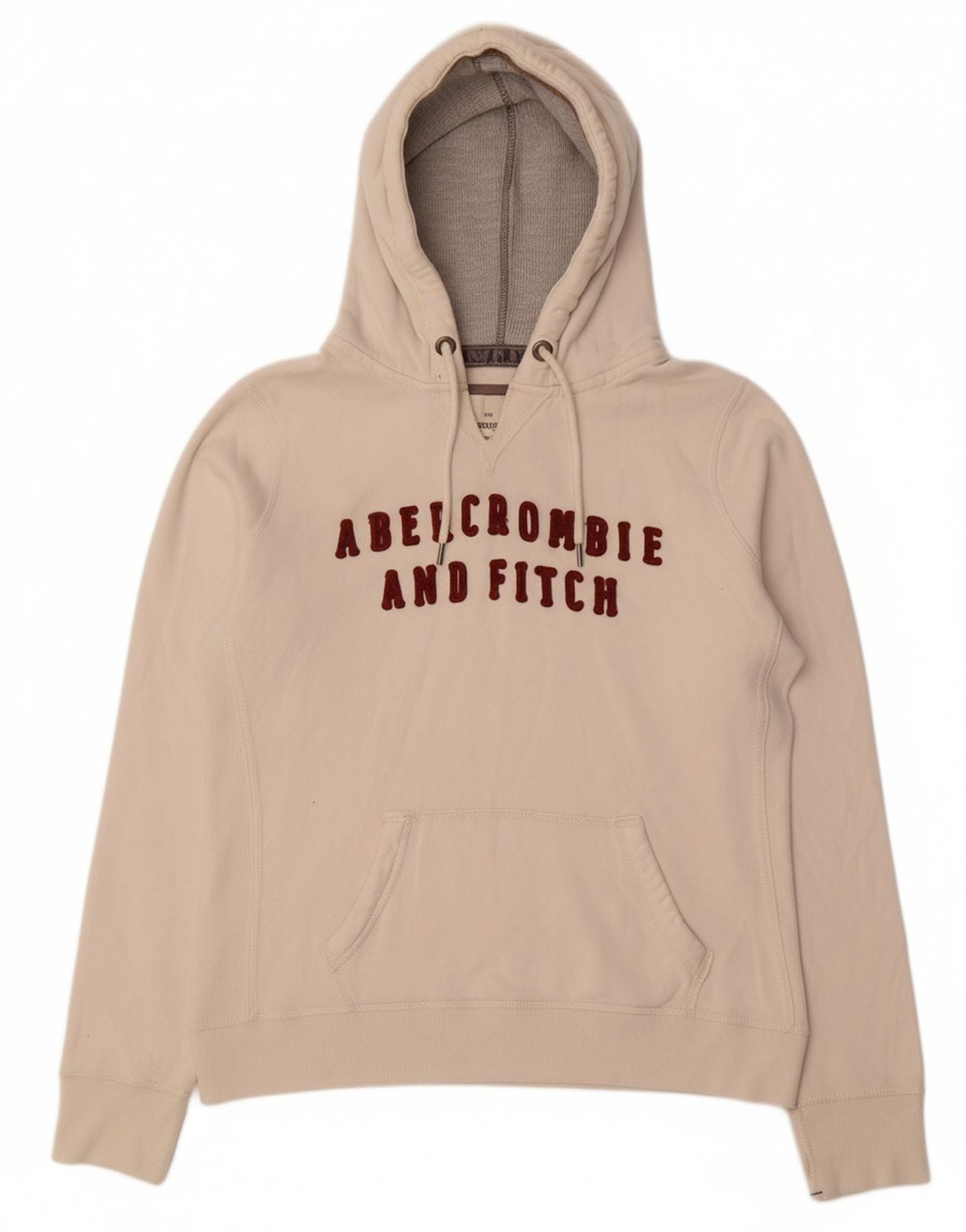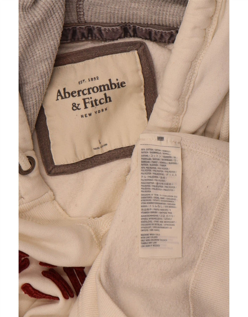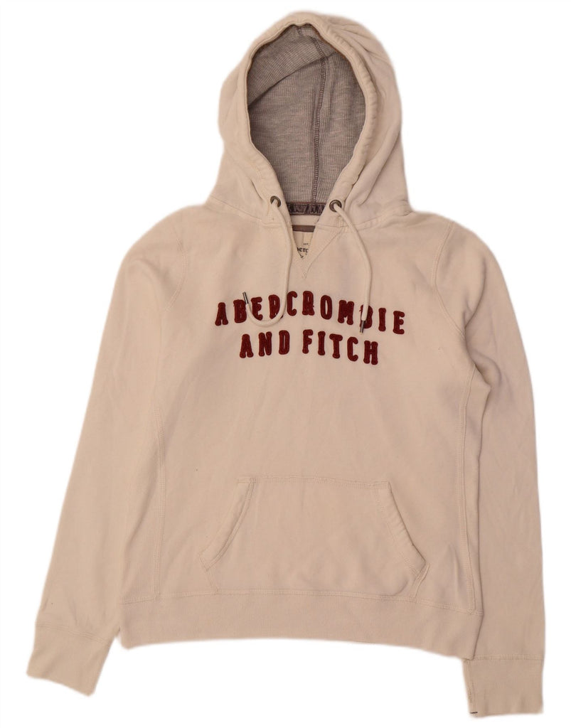 ABERCROMBIE & FITCH Womens Graphic Hoodie Jumper UK 16 Large White Cotton