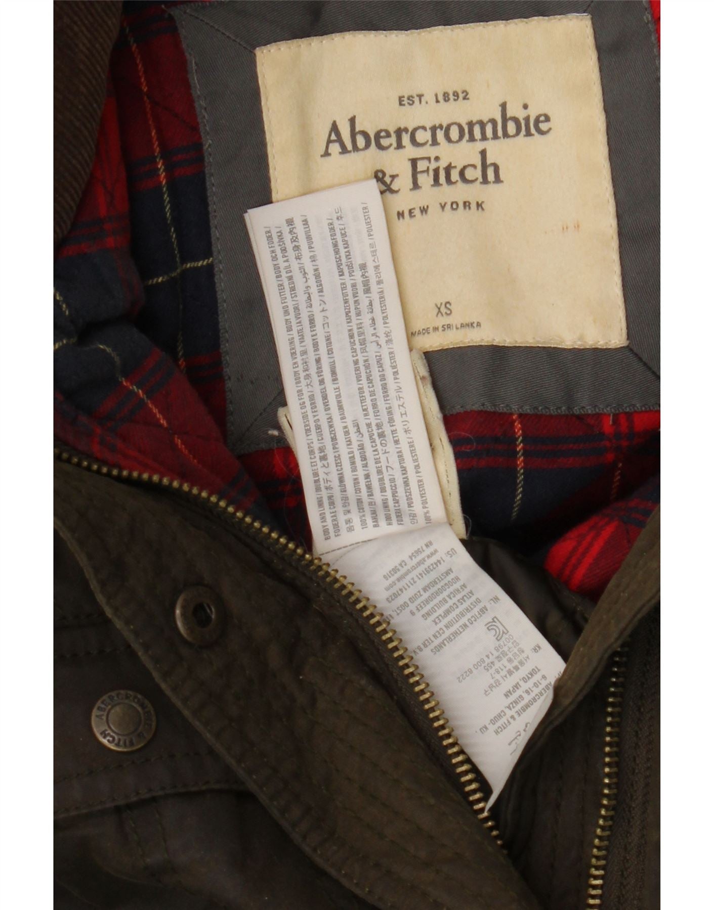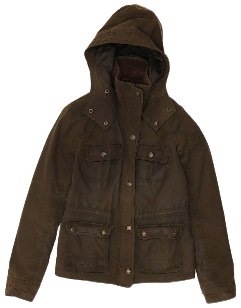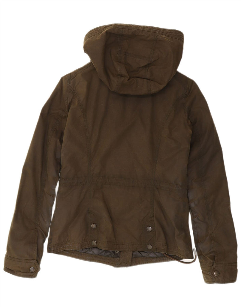 ABERCROMBIE & FITCH Womens Hooded Waxed Cotton Jacket UK 6 XS Khaki Cotton