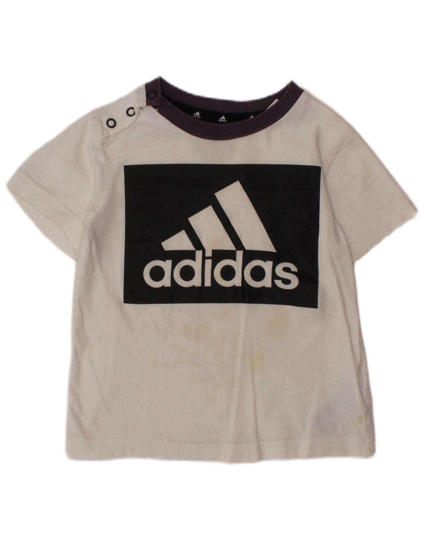 ADIDAS Baby Boys Graphic T-Shirt Top 12-18 Months White Colourblock Cotton