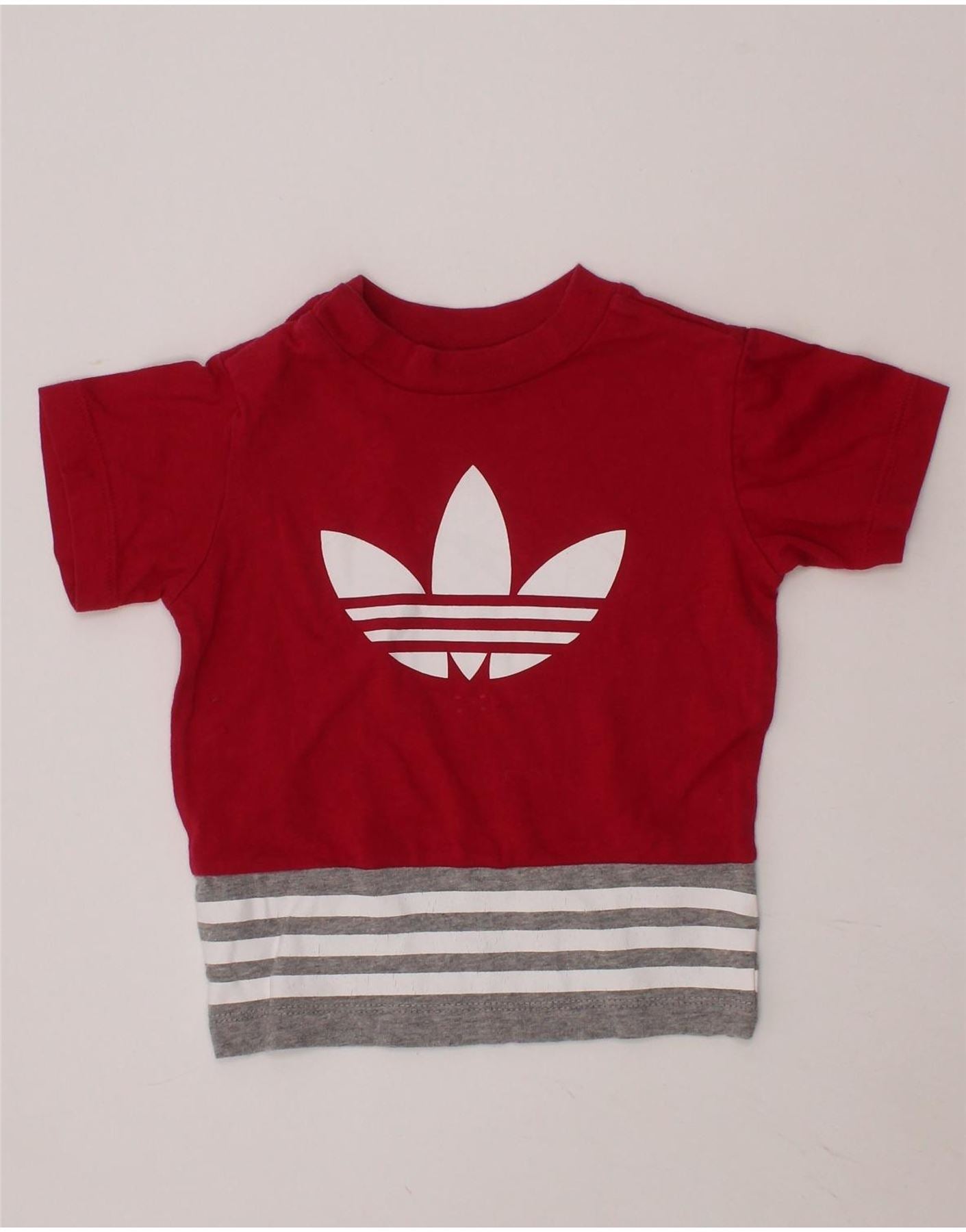 ADIDAS Baby Girls Graphic T-Shirt Top 12-18 Months Burgundy Colourblock