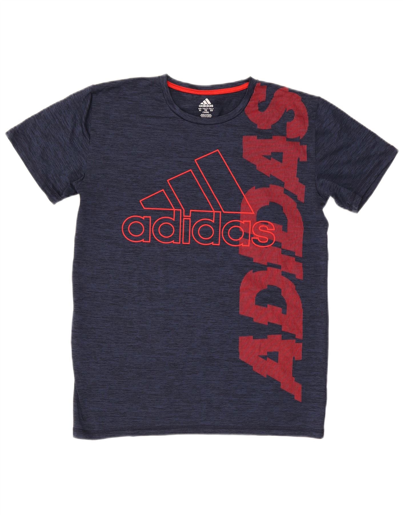 ADIDAS Boys Aeroready Graphic T-Shirt Top 15-16 Years XL Navy Blue Flecked